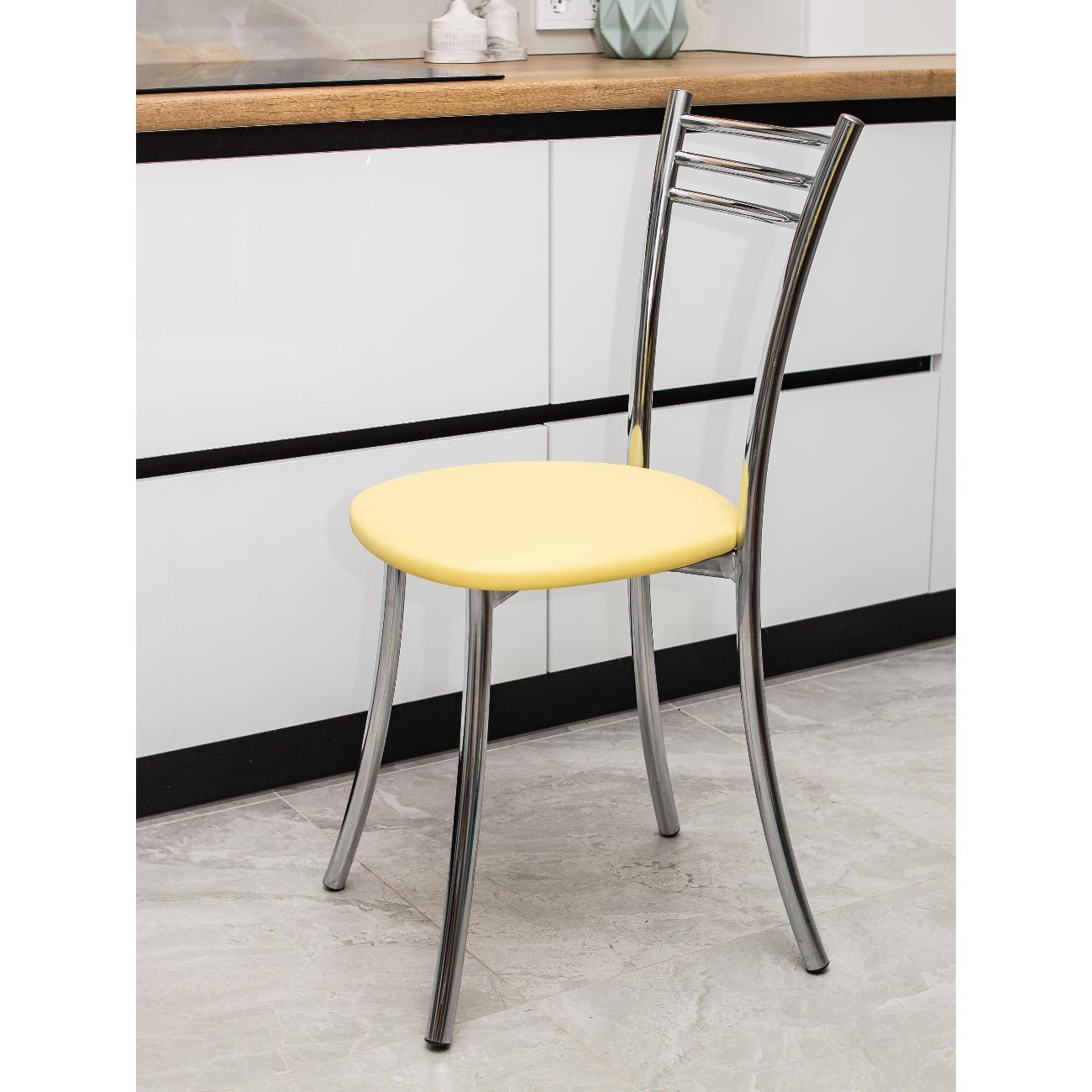 Набор включает четыре стула. Изделия предназначены для использования в помещении: на кухне, в столовой, на даче или в кафе. Каждый стул имеет мягкую сидушку. Ножки выполнены из металла с хромированным покрытием. Каркас цельносварной, что обеспечивает устойчивость конструкции. На нижних концах ножек установлены пластиковые заглушки. Заглушки предотвращают скольжение и защищают напольное покрытие от царапин. Вес одного стула — 3,3 кг. Легкий вес упрощает перемещение стульев по комнате. Сидушка обтянута экокожей. Материал устойчив к загрязнениям, легко очищается влажной тряпкой. Экокожа не впитывает запахи, что актуально для кухонной мебели. Для сборки стула требуется прикрутить мягкую сидушку к цельносварному каркасу. В сидушке и каркасе предусмотрены монтажные отверстия. Крепежные элементы входят в комплект. Для сборки потребуется крестовая отвертка. Сборка одного стула занимает не более 5 минут. Благодаря продуманной конструкции и цельносварному каркасу стул устойчиво стоит на любой ровной поверхности. Рекомендуемая максимальная нагрузка — до 130 кг. Стулья поставляются в разобранном виде. В упаковке находятся: четыре сидушки, четыре цельносварных каркаса, пластиковые заглушки (предварительно установлены на ножки), комплект крепежа. Модель подходит для ежедневного использования на кухне, для временной рассадки гостей, для использования на даче, в столовой или в малом коммерческом помещении (кафе, столовая). Легкий вес позволяет быстро переставлять стулья при уборке или изменении планировки. Стулья имеют лаконичный внешний вид. Хромированные ножки сочетаются с большинством кухонных интерьеров — от минимализма до хай-тека. Мягкая сидушка добавляет комфорта при длительном сидении.
