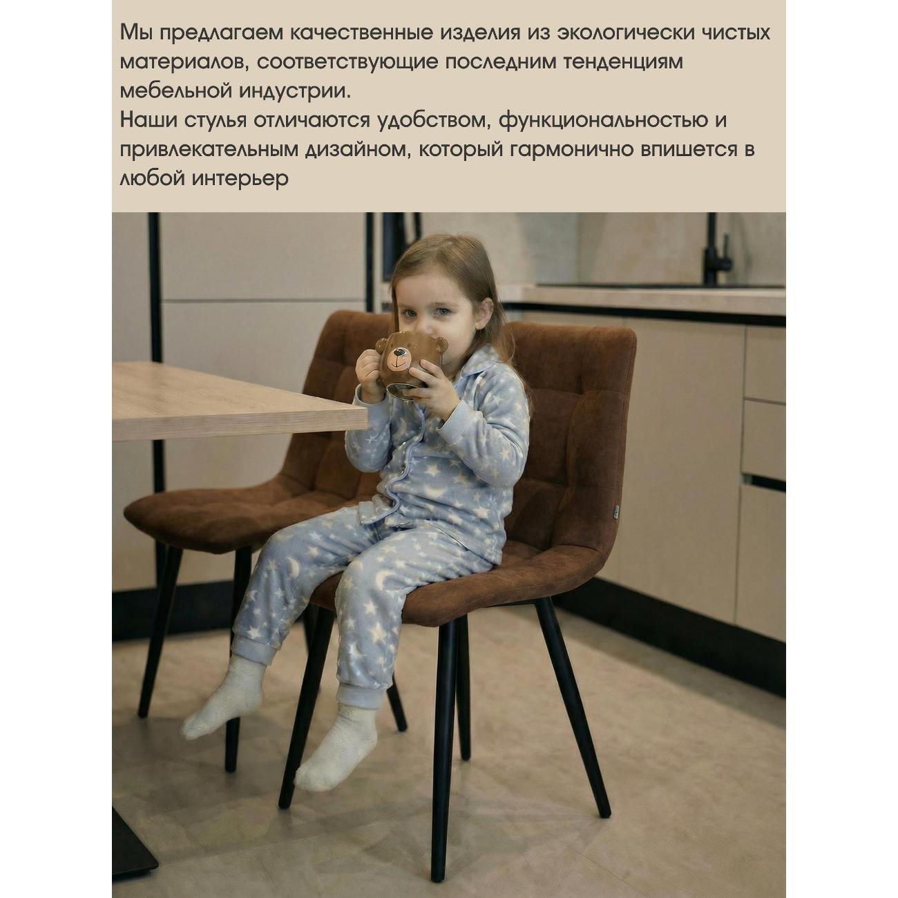 Обивка выполнена из велюра с матовой бархатистой фактурой — материал не только приятен на ощупь, но и обладает антивандальными свойствами, устойчив к загрязнениям и легко чистится с помощью влажной тряпки или специальных средств для мягкой мебели. Классический стеганый дизайн делают эти кухонные стулья со спинкой мягкие универсальным решением для кухни, гостиной, а также для балкона, прихожей или коммерческих помещений.