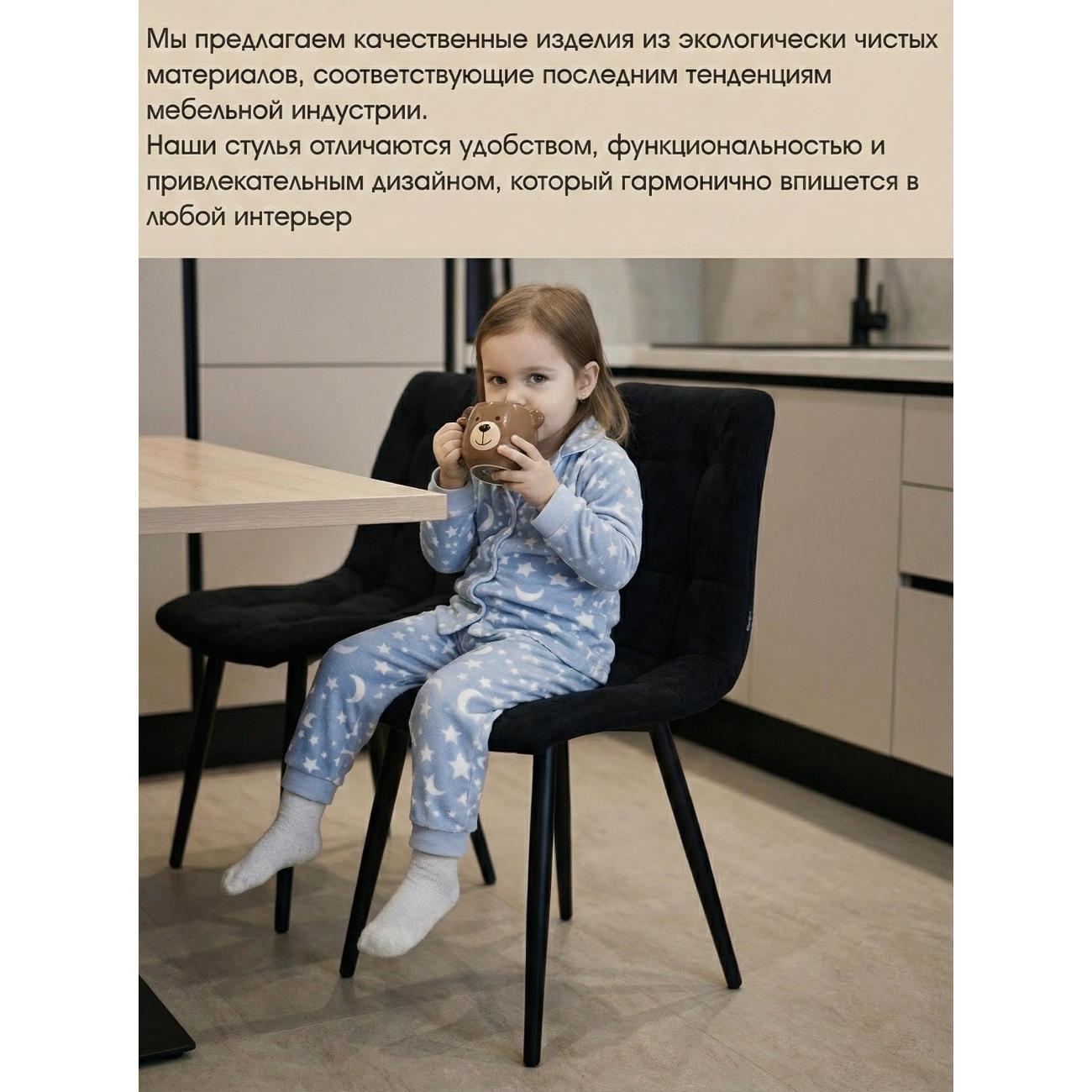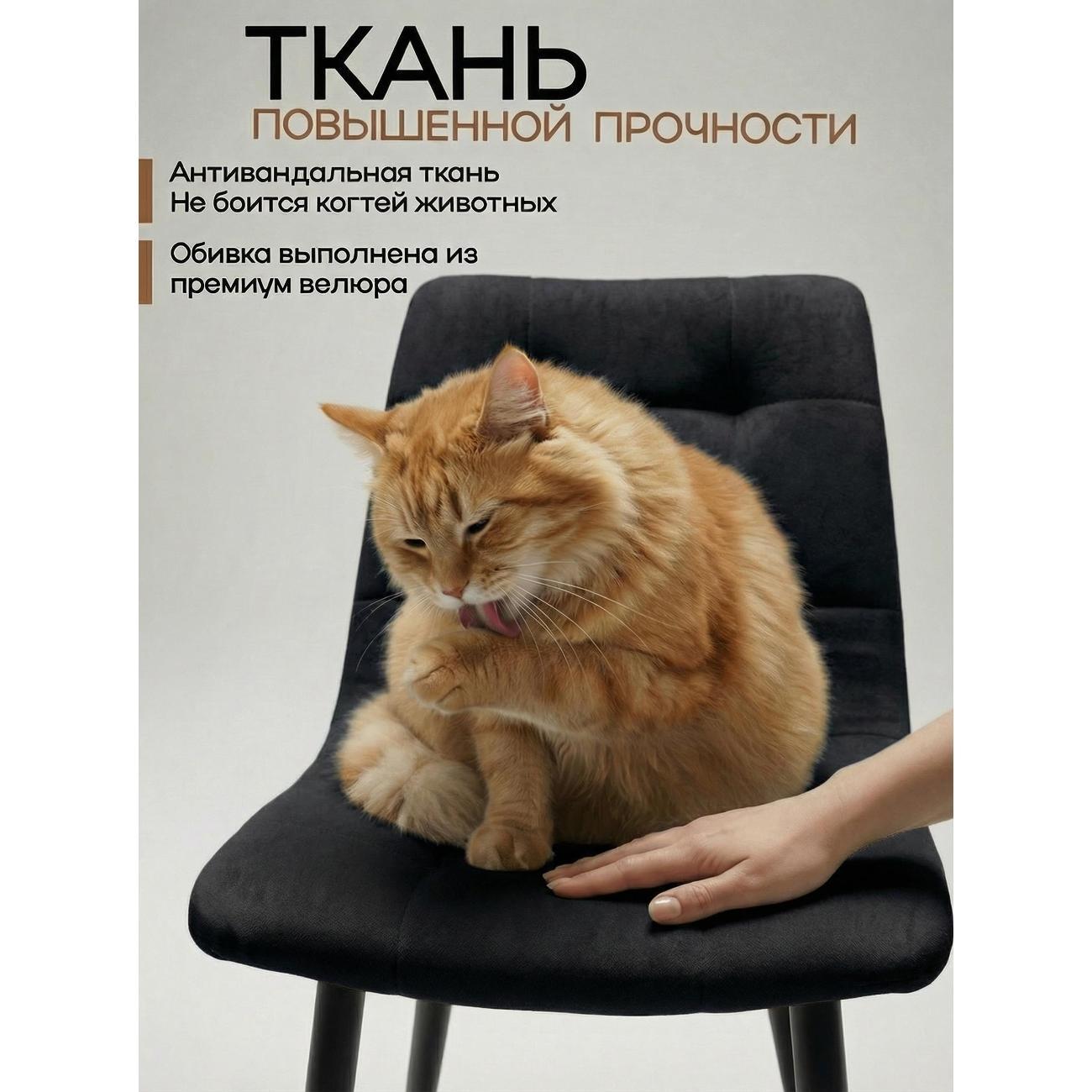 Обивка выполнена из велюра с матовой бархатистой фактурой — материал не только приятен на ощупь, но и обладает антивандальными свойствами, устойчив к загрязнениям и легко чистится с помощью влажной тряпки или специальных средств для мягкой мебели. Классический стеганый дизайн делают эти кухонные стулья со спинкой мягкие универсальным решением для кухни, гостиной, а также для балкона, прихожей или коммерческих помещений.