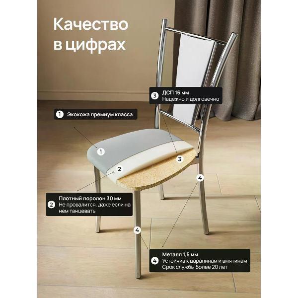 Кухонные стулья в комплекте для обеденной зоны создают уют и современный акцент в интерьере. В комплекте - 2 шт стула, которые подходят для кухни, гостиной, балкона, и сочетаются с обеденным столом. Изделия впишутся в любой интерьер благодаря классическому дизайну и функциональности, придавая современный внешний вид без излишеств. Стул с металлическими ножками диаметром 25 мм и спинкой обеспечит удобство при использовании, а долговечность материалов гарантирует долгий срок службы. Каркас из металла толщиной 1,5 мм обеспечивает прочность и надежность, эко-кожа проста в уходе — достаточно сухой чистки, чтобы вернуть первоначальный вид. Плотный поролон 30 мм. Металлический каркас гарантирует надежность и устойчивость стула, выдерживая нагрузку до 180 кг. На ножках стула предусмотрены загулшки, которые не оставляют следов и царапин на полу. Простая сборка, вся фурниутра идет в комплекте. SOFT Мебель производит и продает мебель для дома в России, поэтому с радостью готова помочь своим покупателям в любом вопросе. С уважением, SOFT Мебель!