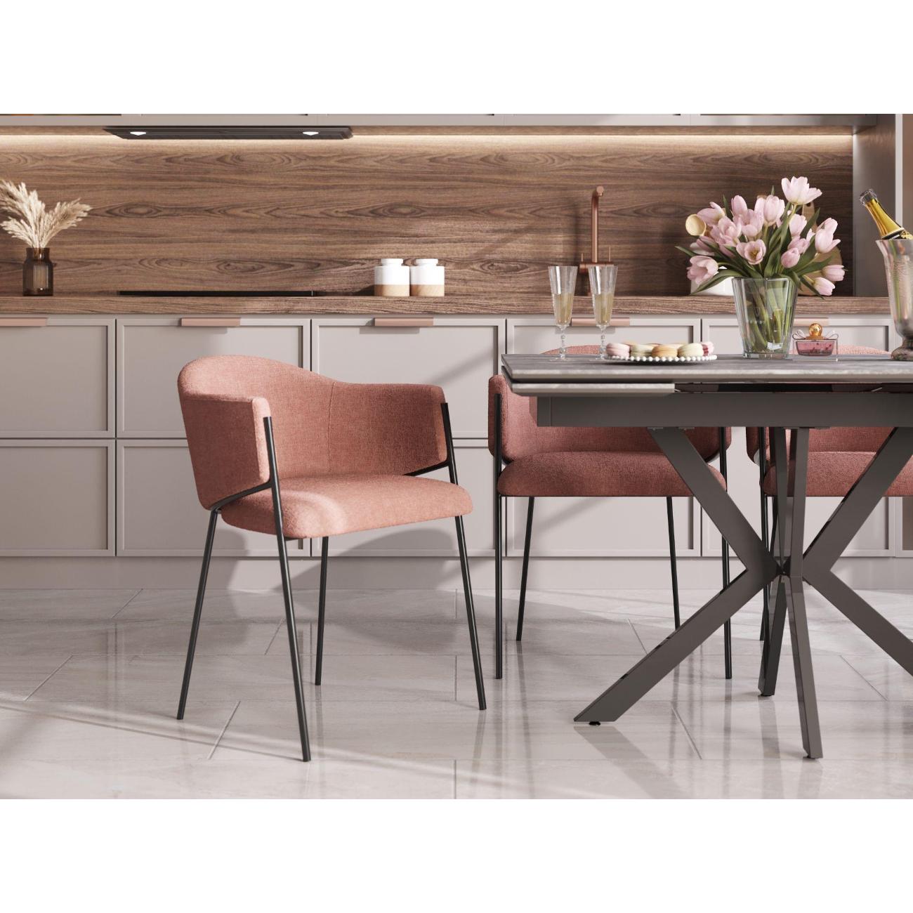 Дизайн и удобство. Лаконичная форма с плавными изгибами подлокотников и мягкой спинки создаёт комфортную посадку, поддерживающую расслабленное положение тела. Тонкие ножки визуально облегчают общий вид стула, делая его универсальным для различных интерьеров.