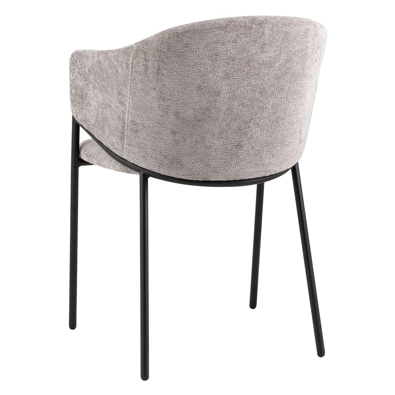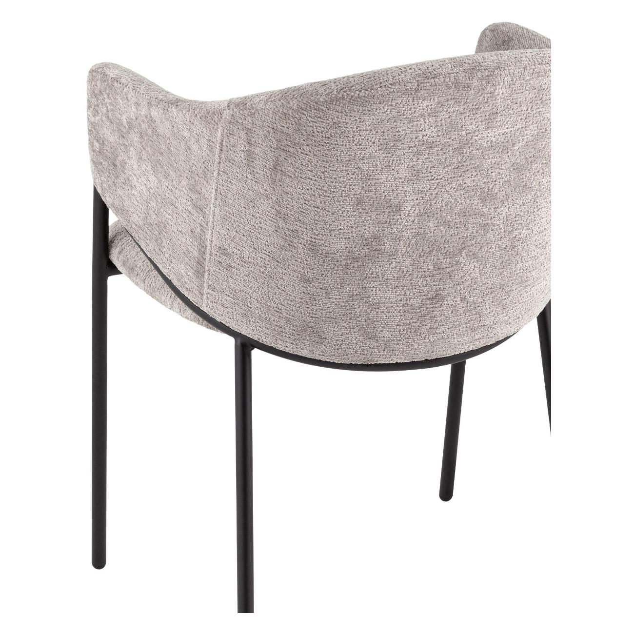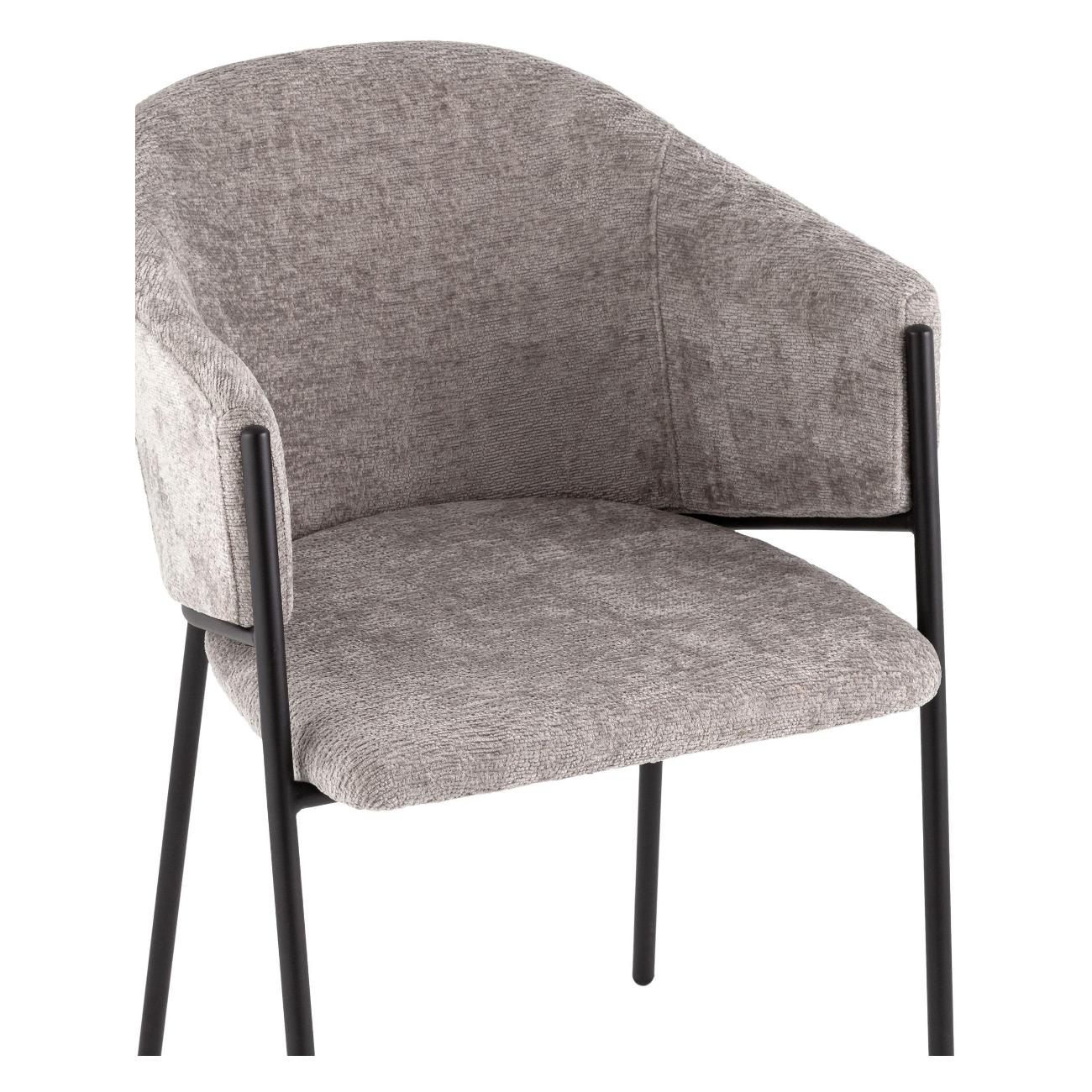 Материалы и исполнение. Сиденье и спинка стула обтянуты мягкой тканью шенилл — фактурный материал с приятным на ощупь рельефом, приятного серого цвета, что придаёт изделию уют и современность. Металлический каркас с чёрным матовым покрытием обеспечивает надёжность и долговечность конструкции, а также подчёркивает контраст и выразительность дизайна.
