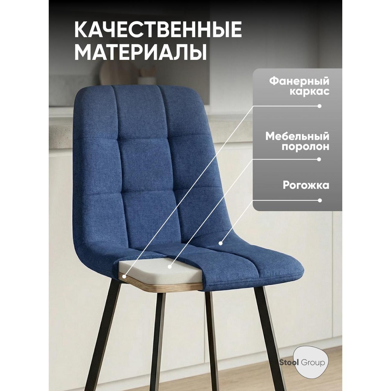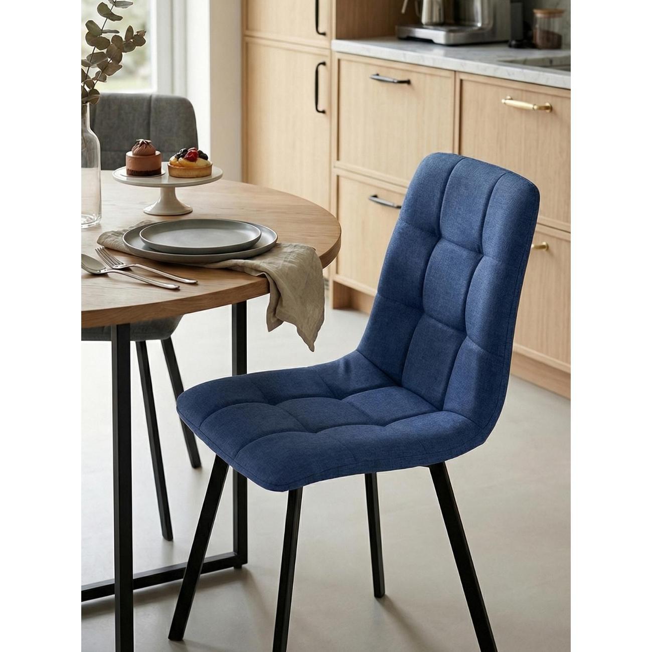 Классический обеденный стул Chilly без подлокотников на металлических ножках плоской формы. Мягкая обивка выполнена из рогожки — прочного и износостойкого материала. Внутренняя сторона сиденья и спинки украшена геометричной строчкой.