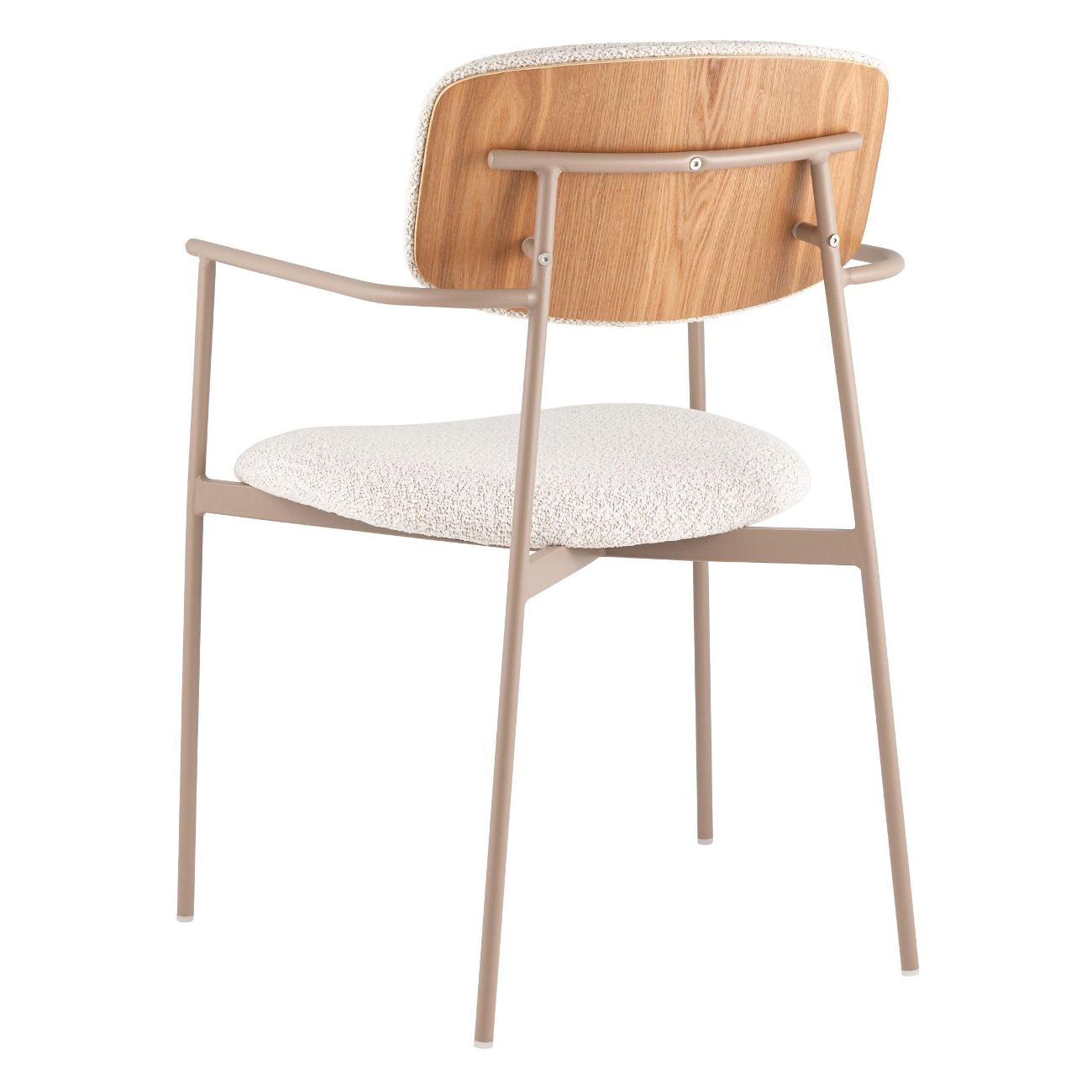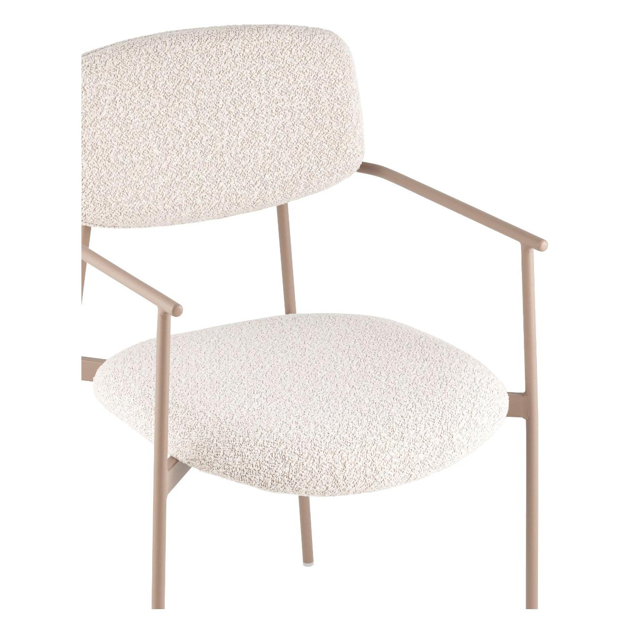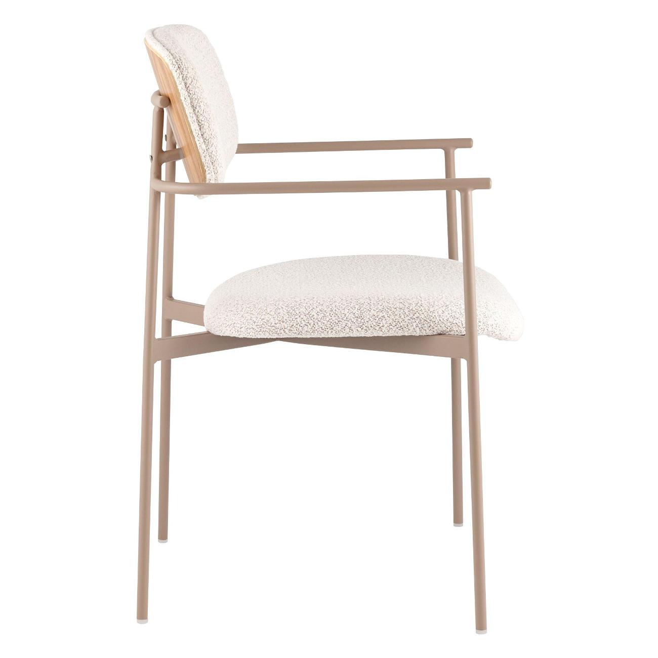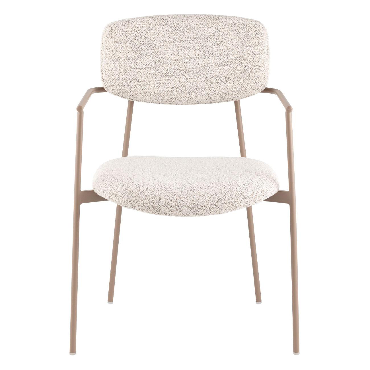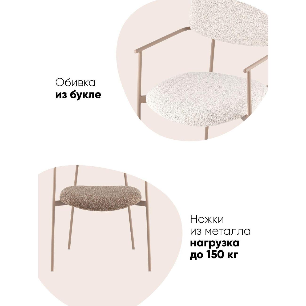 Стул Doe – стильный выбор для современного интерьера.Материалы и цвета. Сиденье и спинка стула выполнены из высококачественного букле в светло-бежевом цвете, который сочетает в себе уют и элегантность. Ножки стула из металла окрашены в нежный бежевый оттенок, создавая гармоничный контраст с обивкой.Дизайн и комфорт. Стул имеет мягкое сиденье и закругленную спинку, что обеспечивает максимальный комфорт даже при длительном сидении. Благодаря широкой форме сиденья и продуманному дизайну, он хорошо поддерживает осанку, а наличие подлокотников добавляет дополнительные удобства.Устойчивость и безопасность. С максимальной нагрузкой 150 кг, стул отличается прочностью и долговечностью. Подпятники, предусмотренные на ножках, защищают напольное покрытие от повреждений и предотвращают скольжение, что делает использование стула безопасным и удобным.Место использования. Отлично подойдет для кухни, гостиной, кафе или конференц-залов. Благодаря современному и лаконичному дизайну, он прекрасно дополнит интерьеры различных стилей и отлично будет смотреться в комплекте.Стулья для кухни – это важный элемент интерьера, который сочетает в себе комфорт и стиль. Стул кухонный может быть как практичным, так и декоративным, дополняя общий дизайн помещения. Если вы цените удобство, обратите внимание на стул мягкий, который обеспечит комфорт во время приема пищи. Для дополнительной поддержки спины идеально подойдет стул мягкий со спинкой, который подчеркнет уют и функциональность вашей кухни. Стул обеденный станет центральным элементом обеденной зоны, создавая атмосферу тепла и гостеприимства. Если вы предпочитаете современный стиль, выберите стул с металлическими ножками, который добавит легкости и изысканности в интерьер. Такие стулья подходят не только для кухни, но и для гостиной, где они могут стать частью зоны отдыха. Стул для туалетного столика добавит элегантности в вашу спальню, а для кабинета можно выбрать строгий и лаконичный интерьерный стул, который подчеркнет деловой стиль. Если вы ищете стулья для кухни мягкие, они станут идеальным решением для создания комфортной обеденной зоны. Кухонные стулья представлены в различных стилях, что позволяет подобрать модель, которая идеально впишется в ваш интерьер. Выбирайте качественные стулья, которые подчеркнут ваш стиль и создадут уют в любом помещении!