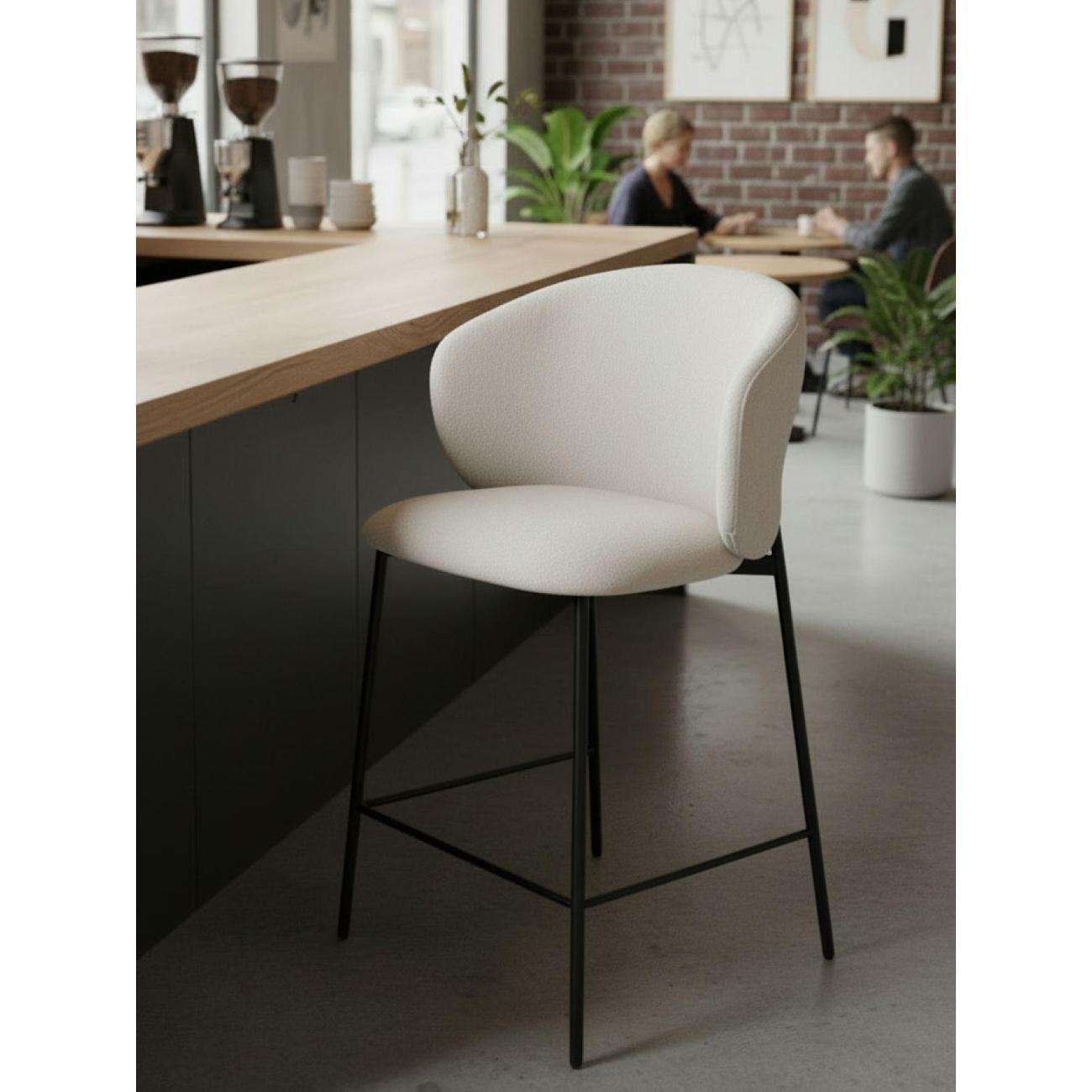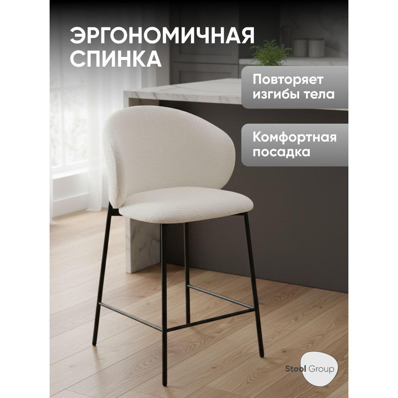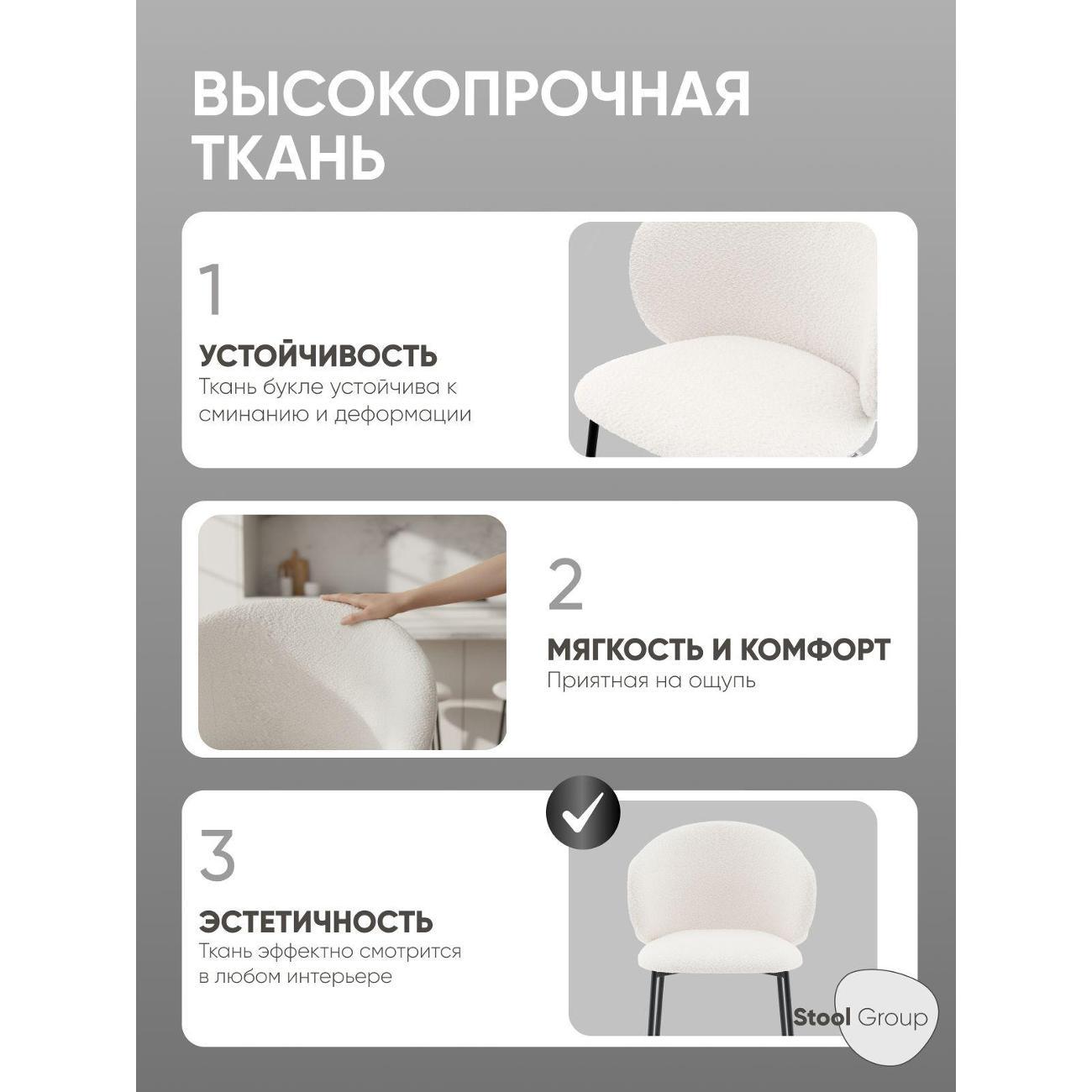 Для кухонных островков, барных зон и высоких столешниц стул подходит в роли стула полубарного для кухни со спинкой, обеспечивая надёжную опору и поддерживая удобную посадку во время завтраков, перекусов или общения. Ткань букле приятна на ощупь и хорошо подходит для повседневного использования, сохраняя аккуратный внешний вид. Удобная высота делает модель практичной также и в косметических зонах — стул можно использовать как стул для макияжного столика, создавая стабильную и комфортную поверхность для работы перед зеркалом.