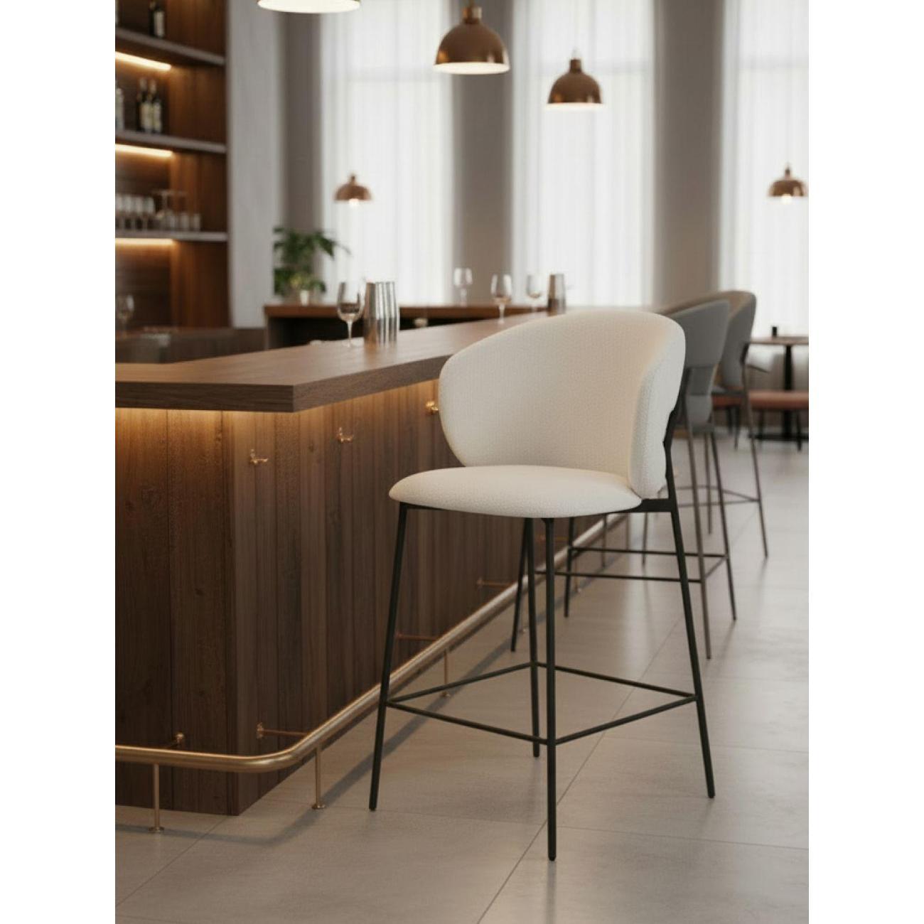 Полубарный стул сочетает комфорт посадки и удобную высоту, подходя для кухонных зон, рабочих поверхностей и интерьерных задач, где требуется приподнятое, но не слишком высокое сиденье. Обивка из букле придаёт модели мягкость, уютную фактуру и визуальную выразительность, делая посадку более комфортной. Благодаря продуманной форме и устойчивой конструкции модель удобно использовать как стул полубарный, обеспечивающий комфорт при ежедневном применении в доме или рабочем пространстве.