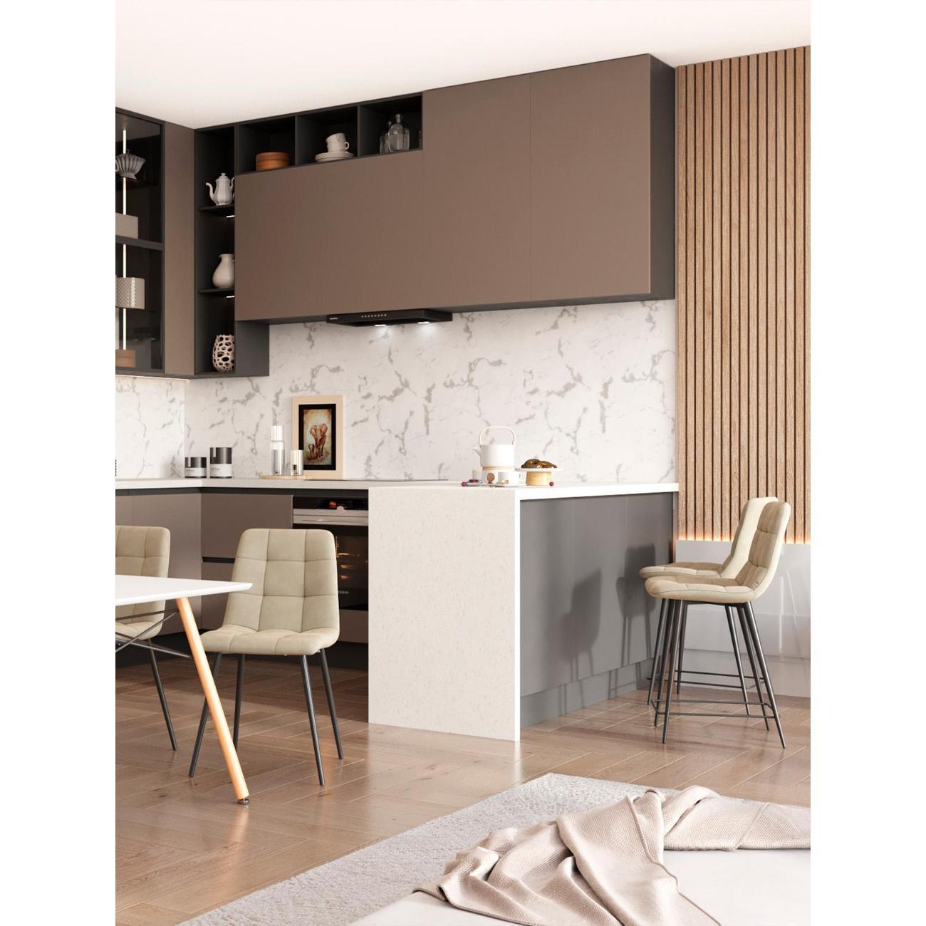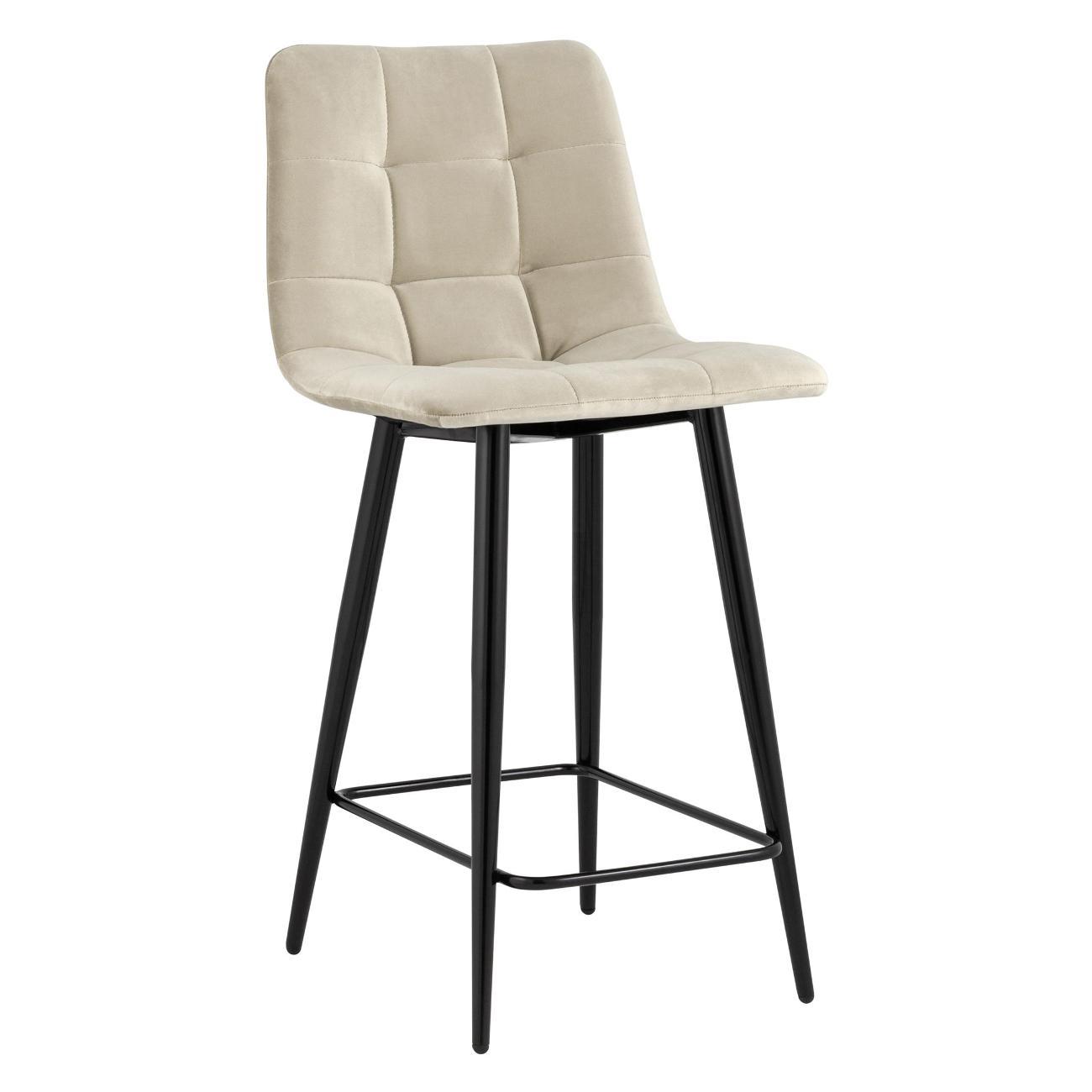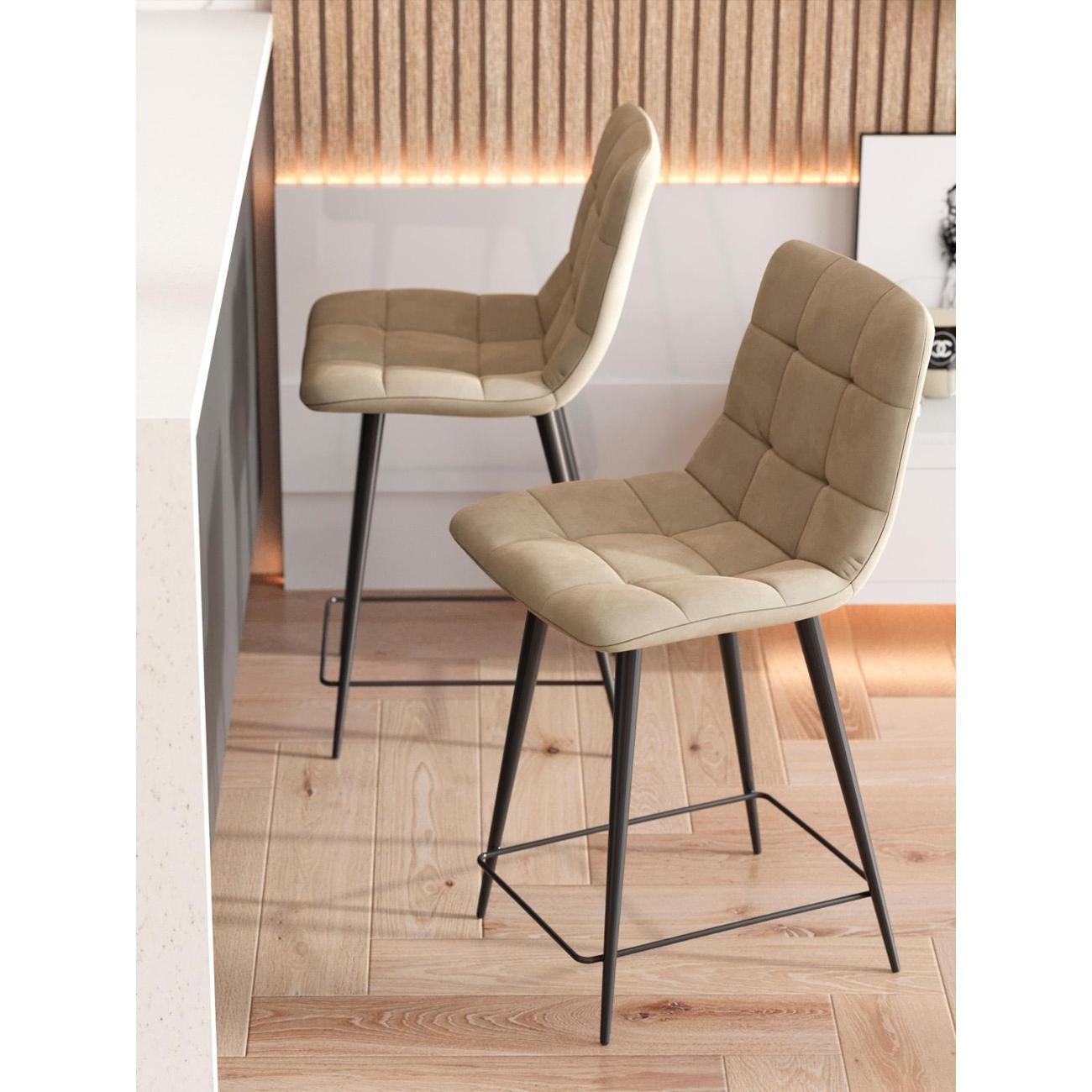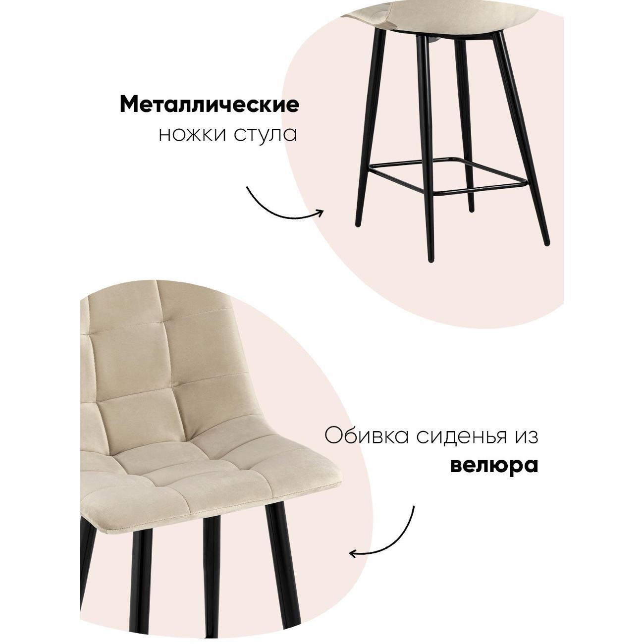 Высота сиденья стула 60 см. Подойдет для низкой барной стойки и тем, у кого барная стойка - продолжение кухонного гарнитура. Лаконичный полубарный стул с обивкой из велюра без подлокотников. Плавная форма сиденья и спинки обеспечивают комфортную посадку. Красивая строчка на внутренней стороне велюровой обивки, эргономичная спинка, аккуратное исполнение и качественные материалы. Ножки выполнены из металла. Низкий барный стул. В стиле лофт. Комплект полубарных стульев для дома, кухни, для бара и барной стойки. Мягкие стулья со спинкой набор 2 шт.