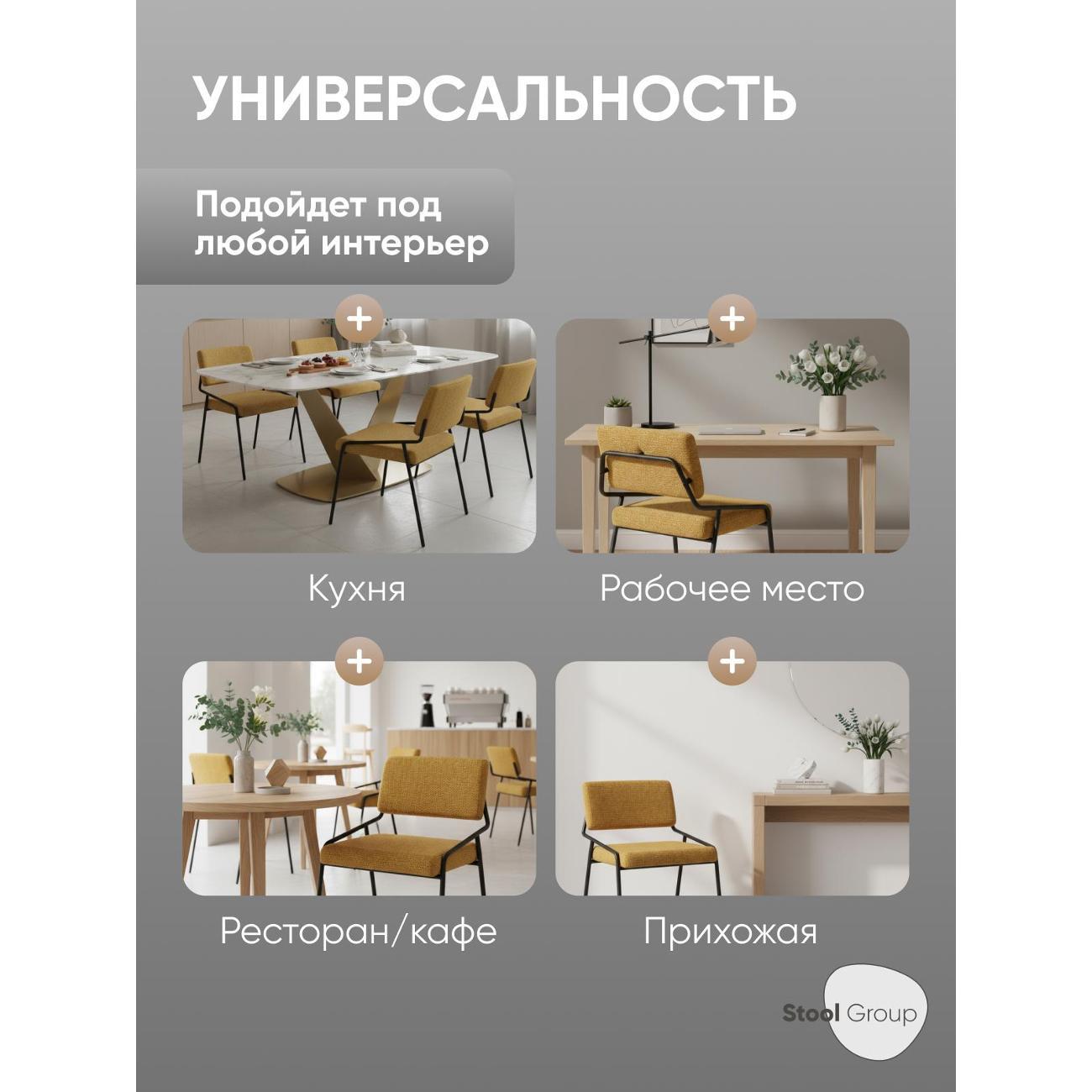 Обеденные стулья с обивкой из шенилла востребованы в интерьерах лофт, модерн и классике благодаря аккуратной форме и эстетичному дизайну. Комплект удобен не только для домашнего использования, но и для кафе, ресторанов, салонов и общественных зон. Устойчивая конструкция обеспечивает стабильность, выдерживает повышенные нагрузки и сохраняет форму при длительной эксплуатации, что делает изделия надёжным решением для помещений с высокой проходимостью.
