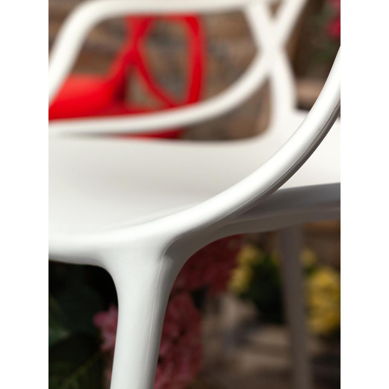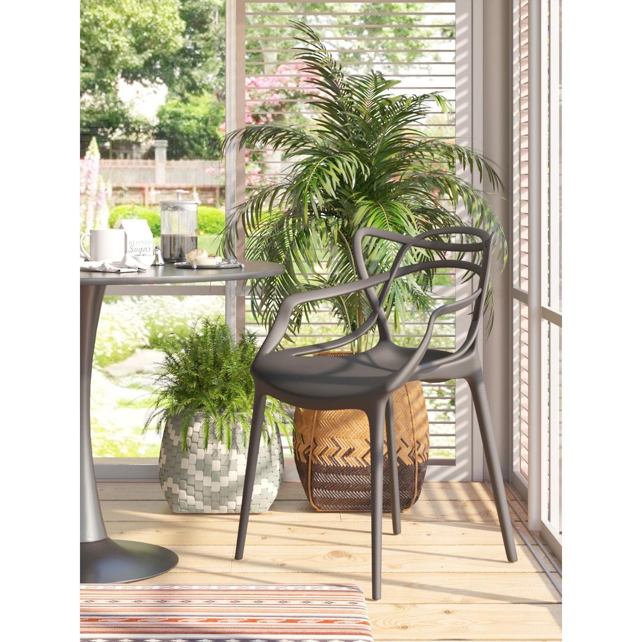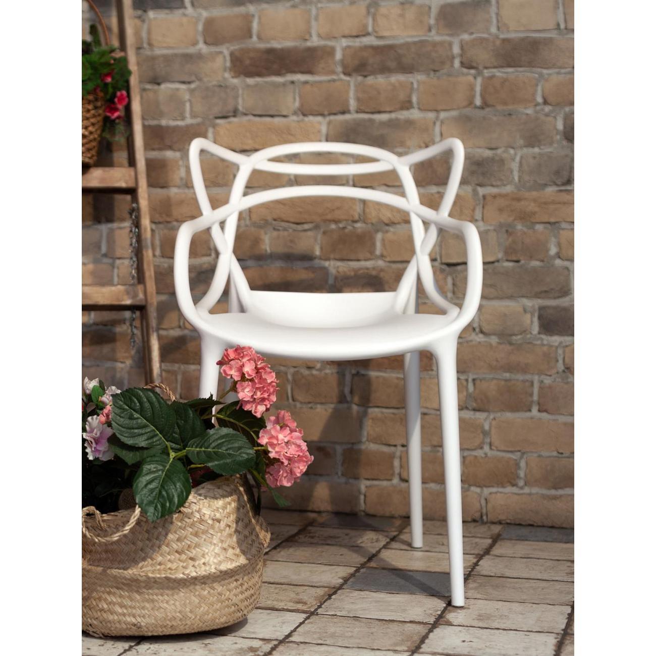 Стул из прочного пластика в современном дизайне. Подойдет как в обеденную зону, так и в беседку или кафе. В изготовлении стула использовался износостойкий, ударопрочный, термостойкий материал - PP-пластик. Плетеный дизайн спинки плавно переходит в сиденье.