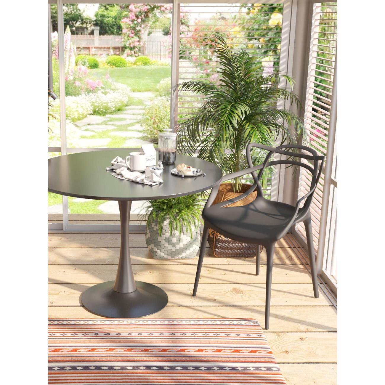 Стул из прочного пластика в современном дизайне. Подойдет как в обеденную зону, так и в беседку или кафе. В изготовлении стула использовался износостойкий, ударопрочный, термостойкий материал - PP-пластик. Плетеный дизайн спинки плавно переходит в сиденье.