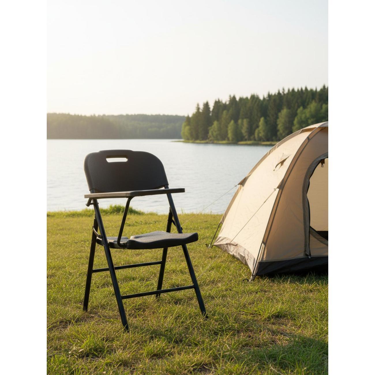 Этот складной стульчик с удобным съёмным столиком под наклоном идеально подходит для отдыха на даче, в саду или на природе. Прочный пластиковый материал делает посадку удобной, обеспечивает лёгкость ухода и устойчивость к атмосферным условиям. Благодаря своей мобильности и компактности модель отлично подходит как стул походный, который удобно брать с собой в поездки, на пикники или длительные выезды. Он также является практичным вариантом для рыбалки, обеспечивая комфортное сиденье и возможность разместить всё необходимое на столике рядом. В составе уличной обстановки стульчик можно рассматривать как элемент категории садовая мебель, гармонично дополняющий зону отдыха на участке.