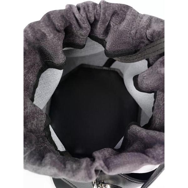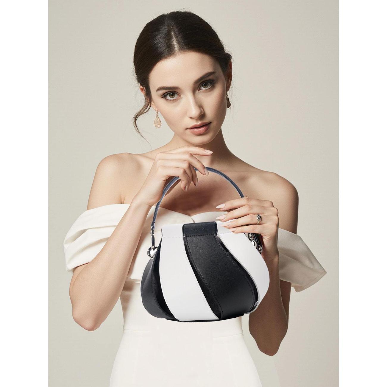 Сумка TWISTY 3037 в форме купола с кожаными клиньями, закрученными по спирали. Внутри мягкий мешок из велюровой ткани, который затягивается на кожаные шнурки. В комплекте маленькая косметичка из велюровой ткани, на молнии для хранения мелочей. В комплекте съемная ручка и тонкий плечевой ремень.