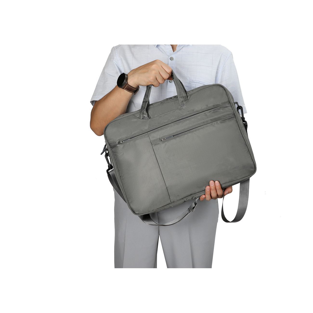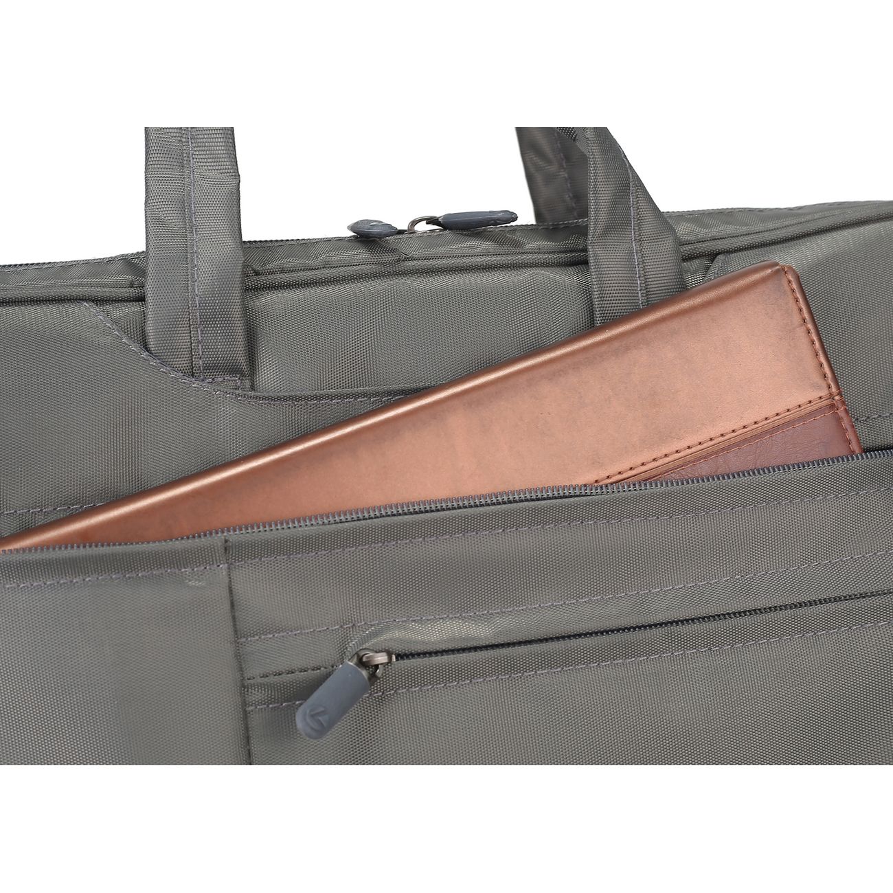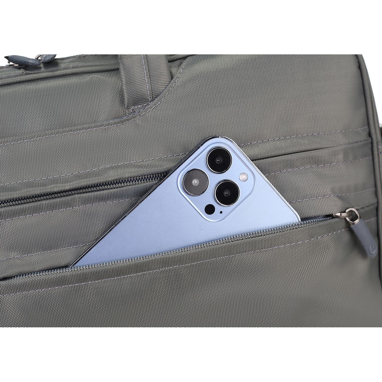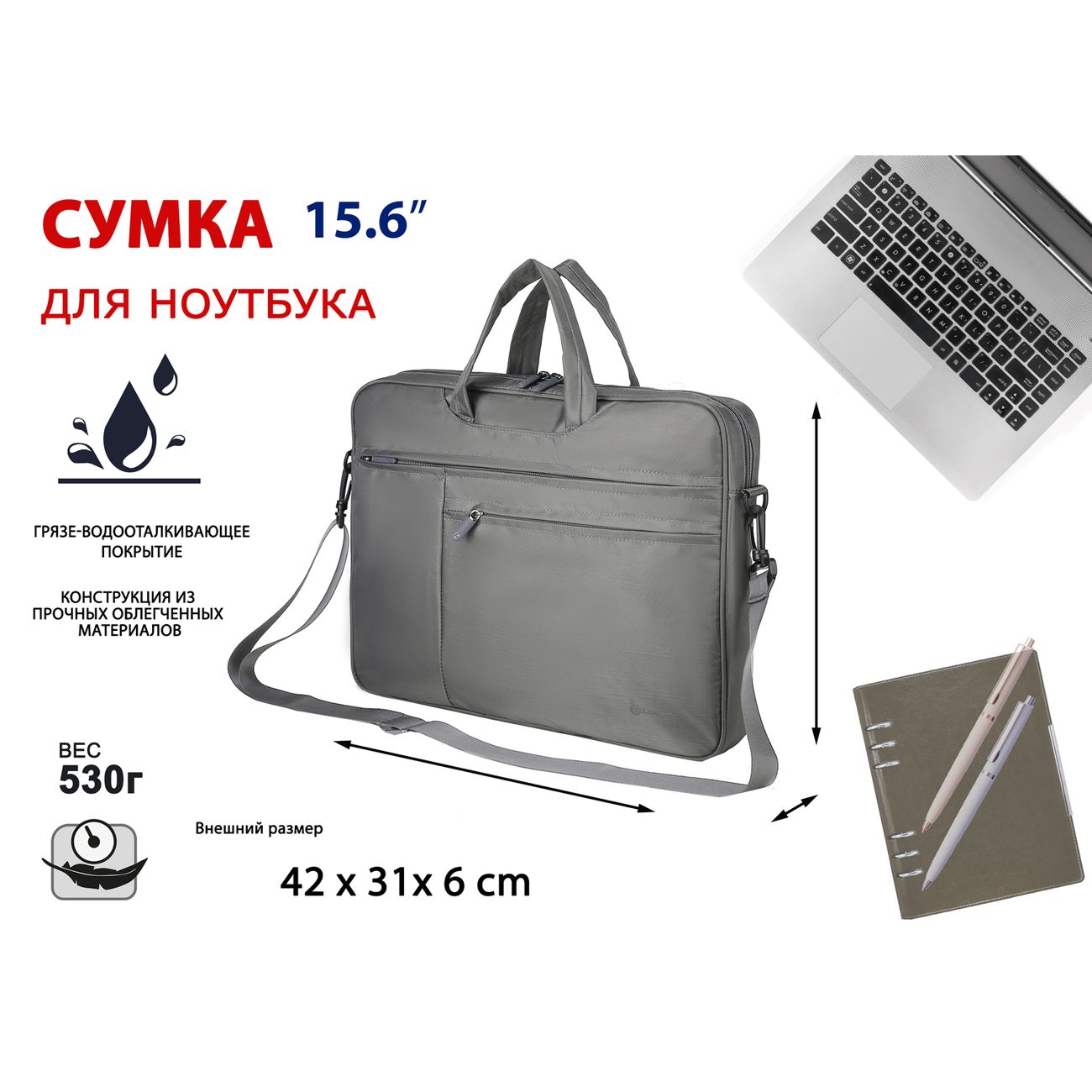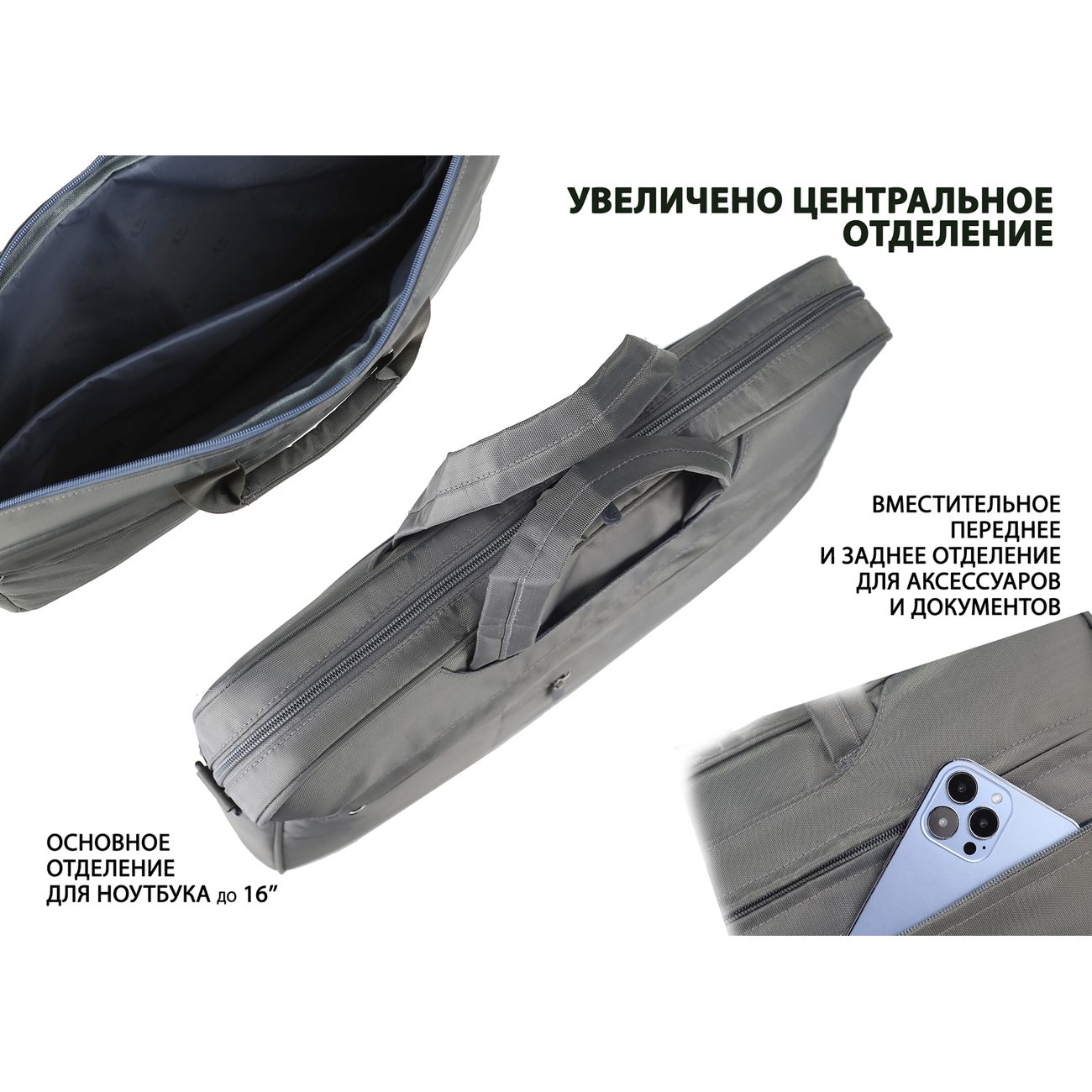 Сумка для ноутбука Lamark L235 Dark Grey практичный деловой аксессуар для удобной транспортировки цифровых устройств с диагональю до 16 дюймов. В конструкции предусмотрено просторное основное отделение с отсеком для документов и планшета. Два больших отделения предназначены для размещения дополнительных принадлежностей, в которые, при необходимости, убираются ручки для компактности при размещении в чемодане. Съемный регулируемый наплечный ремень. С внешней стороны модель имеет отделения для аксессуаров, в которых имеется карабин на ремешке для меток/ключей и крепление для письменных принадлежностей. Надежные молнии обеспечивают быстрый доступ к содержимому.