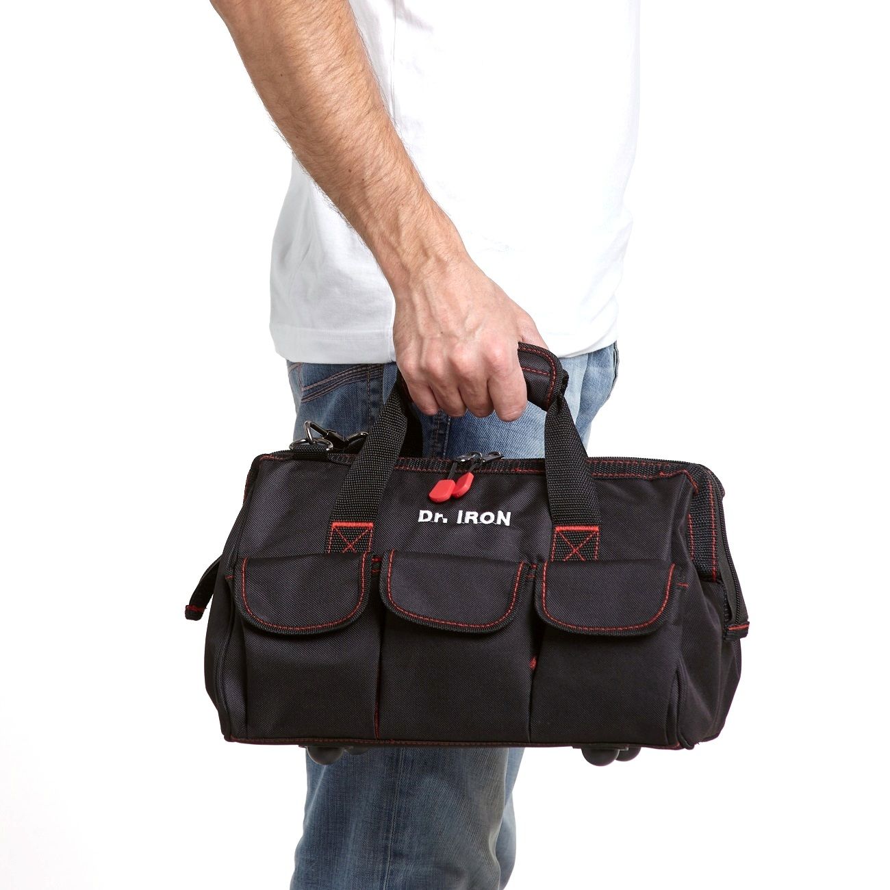 Сумка сама по себе очень даже не плохая. Ремни вшиты как нужно, а не по краям, держат всю нагрузку. Выполнены из широкой высокопрочной ткани. Сумка с легкостью выдерживает мой вес, материал прочный. Что только в ней уже не носили и ключи, и сверла, и напильники и отвертки и даже шило, а она как новая, даже не намека на какой-либо износ. Сама по размеру очень удобная, компактная, хоть в машине, хоть на велосипеде с собой, также есть в комплекте ремень через плечо. Можно по сути даже обед на работу носить