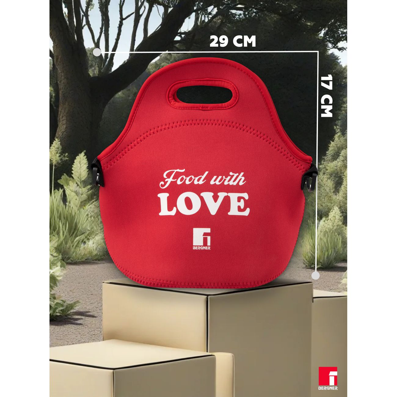 Сумка-термос Bergner BG-36592-RD красного цвета сшита из прочного неопрена. Материал легко очищается от загрязнений, хорошо удерживает тепло и холод. Аксессуар поможет сохранить температуру готовых блюд и напитков.