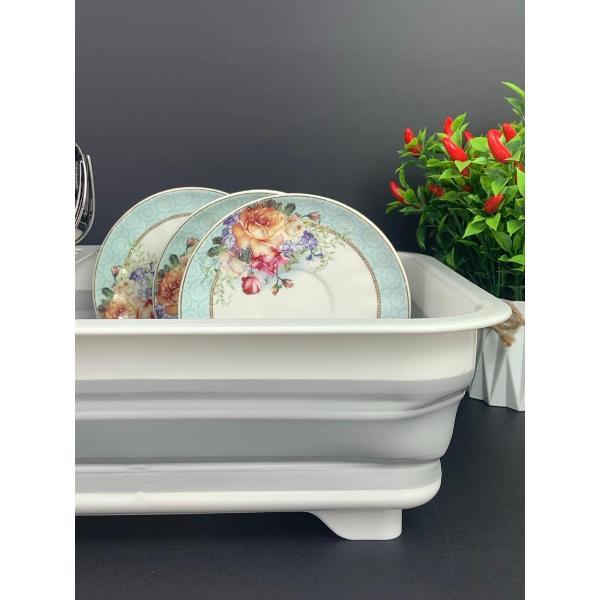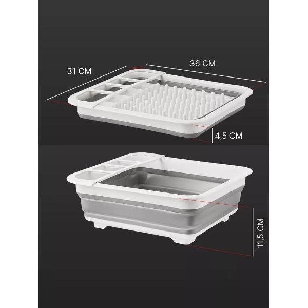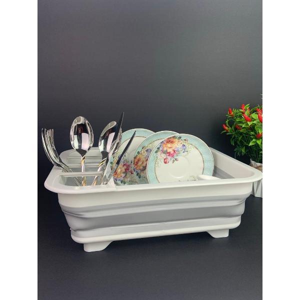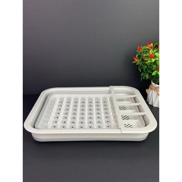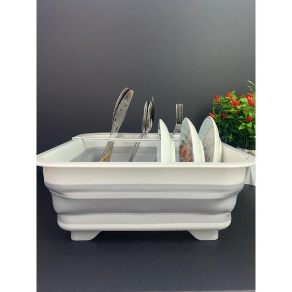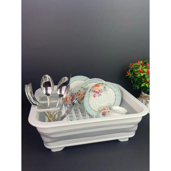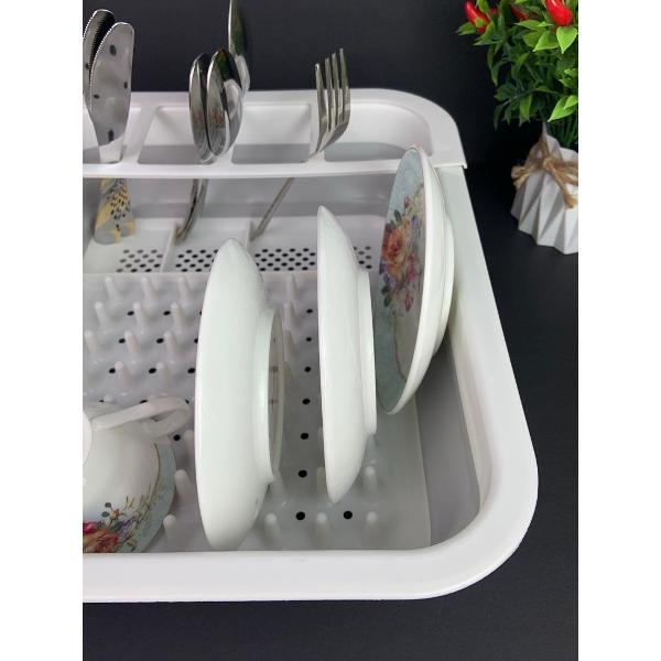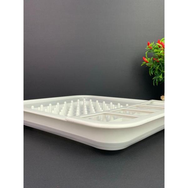 Настольная сушилка для посуды компактна и легко складывается, что позволяет экономить место на кухне и удобно хранить её, когда она не используется.