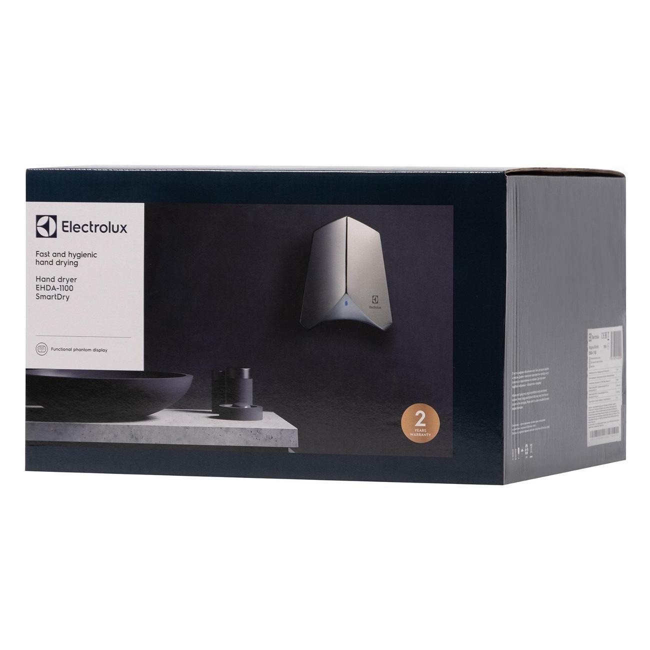 Высокоскоростная сушилка для рук Electrolux EHDA-1100 из серии SmartDry — гигиеничное решение для общественных мест. Мощность 1100 Вт и скорость воздушного потока 324 км/ч обеспечивают сушку рук всего за 10 секунд, что минимизирует время ожидания.