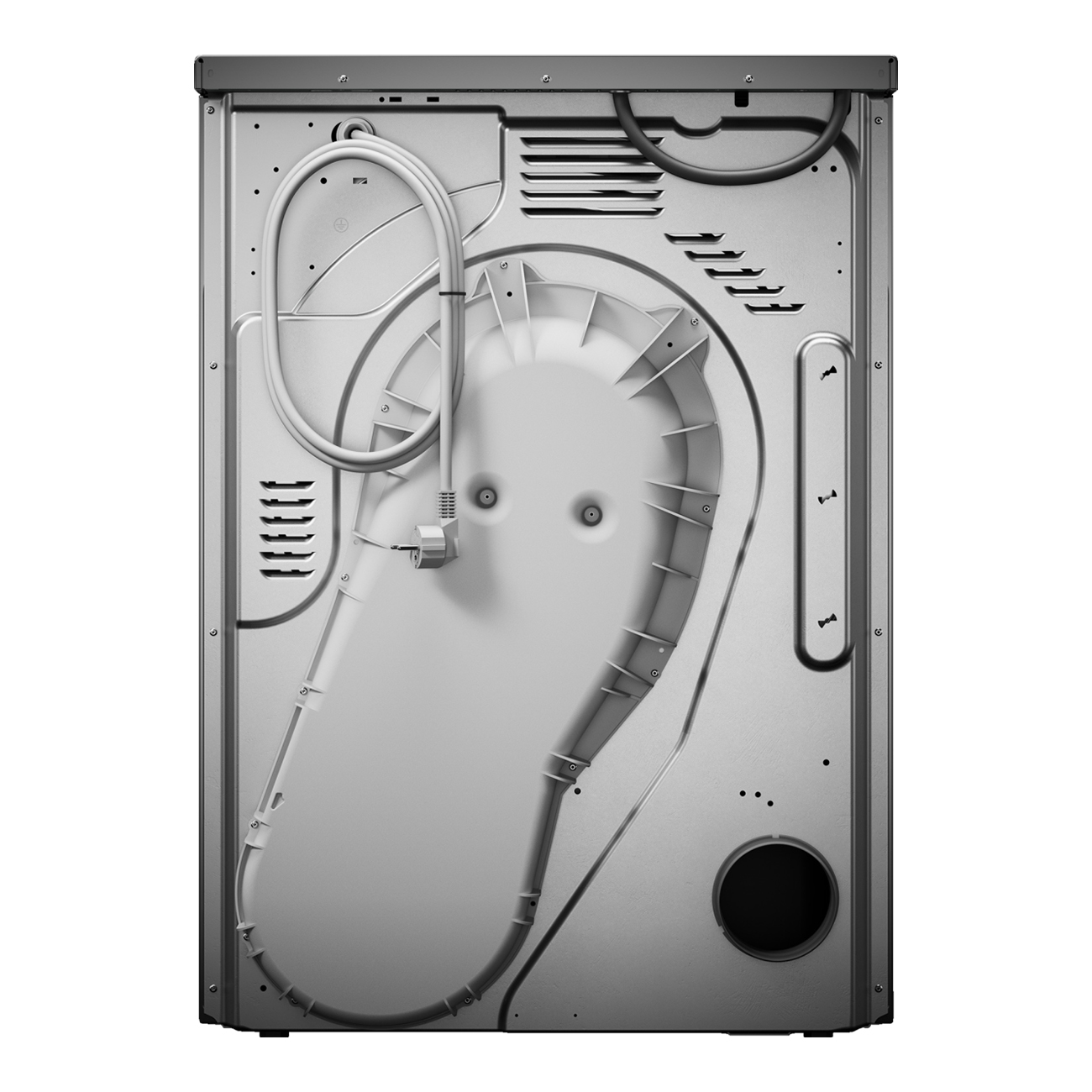 Мощность подключения устройства — 3,3 кВт. Уровень шума не превышает 66 дБ. Максимальная загрузка составляет 7 кг. Управление электронное, с кнопочными переключателями. Информация выводится на цветной TFT-дисплей. Есть функция отсрочки запуска (до 24 ч), сушка по таймеру и защита от сминания. Конденсат собирается в контейнер и отводится в канализацию.
