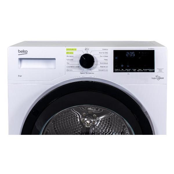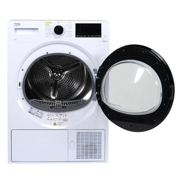 Сушильная машина Beko DF7439SXUV с максимальной загрузкой 7 кг избавит от развешивания белья. В прибор заложены 15 программ для различных видов вещей. В этой модели реализованы функции антисминания, отвода конденсата в дренаж, отложенного старта сроком до суток.