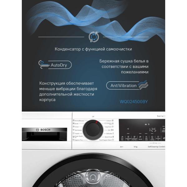 Вы можете купить Сушильная машина Bosch WQG24500BY в магазинах М.Видео по доступной цене. Сушильная машина Bosch WQG24500BY: подробное описание, фото и отзывы реальных покупателей, характеристики, возможность скачать инструкции и подобрать аксессуары.