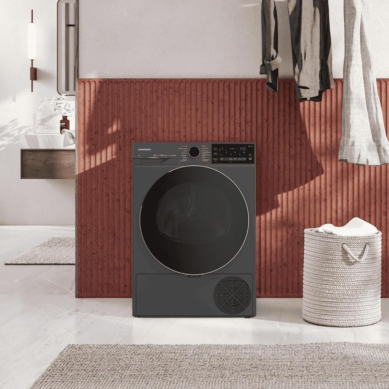 Сушильная машина Grundig GT 7702 W оборудована тепловым насосом и инверторным двигателем. Уровень шума в процессе работы не превышает 64 дБ. Модель можно устанавливать на стиральную машину.