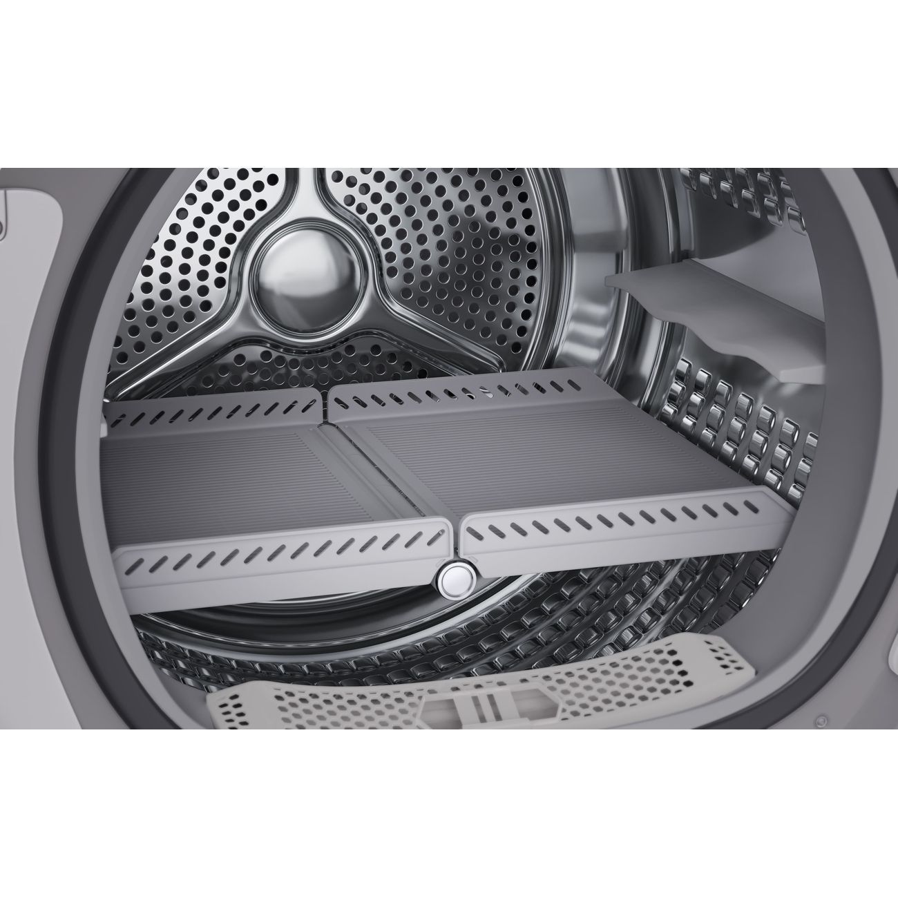 Машина функционирует на основе технологии теплового насоса, что позволяет использовать меньше электроэнергии и экономить. Встроенный четырехслойный сетчатый фильтр собирает пух, ворс и другие мелкие частицы. Технология Anti-twist tech отвечает за бережное высушивание даже самых деликатных вещей, не допуская появления заломов на одежде. Для объемного белья предусмотрена складная полка размером 34х51 см.