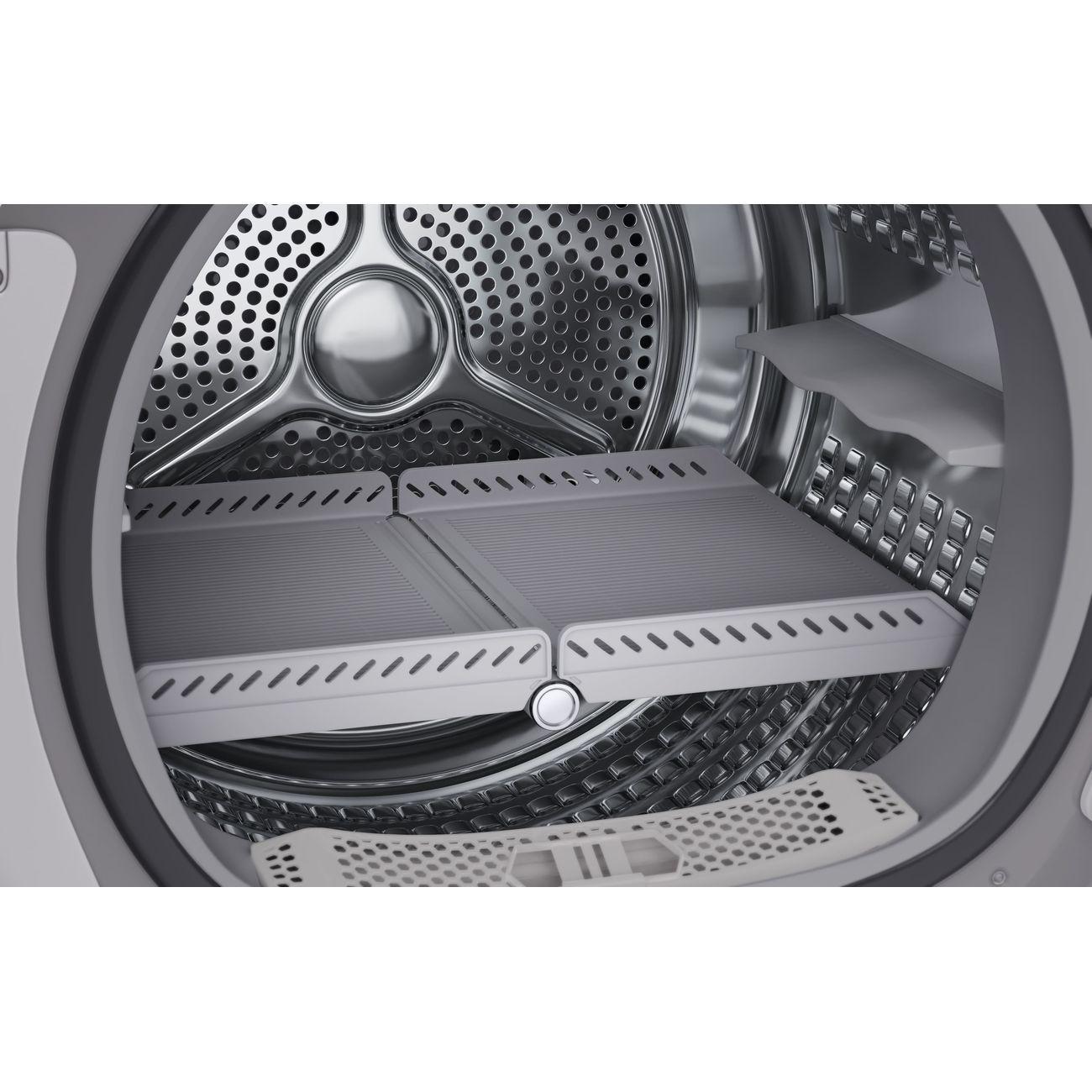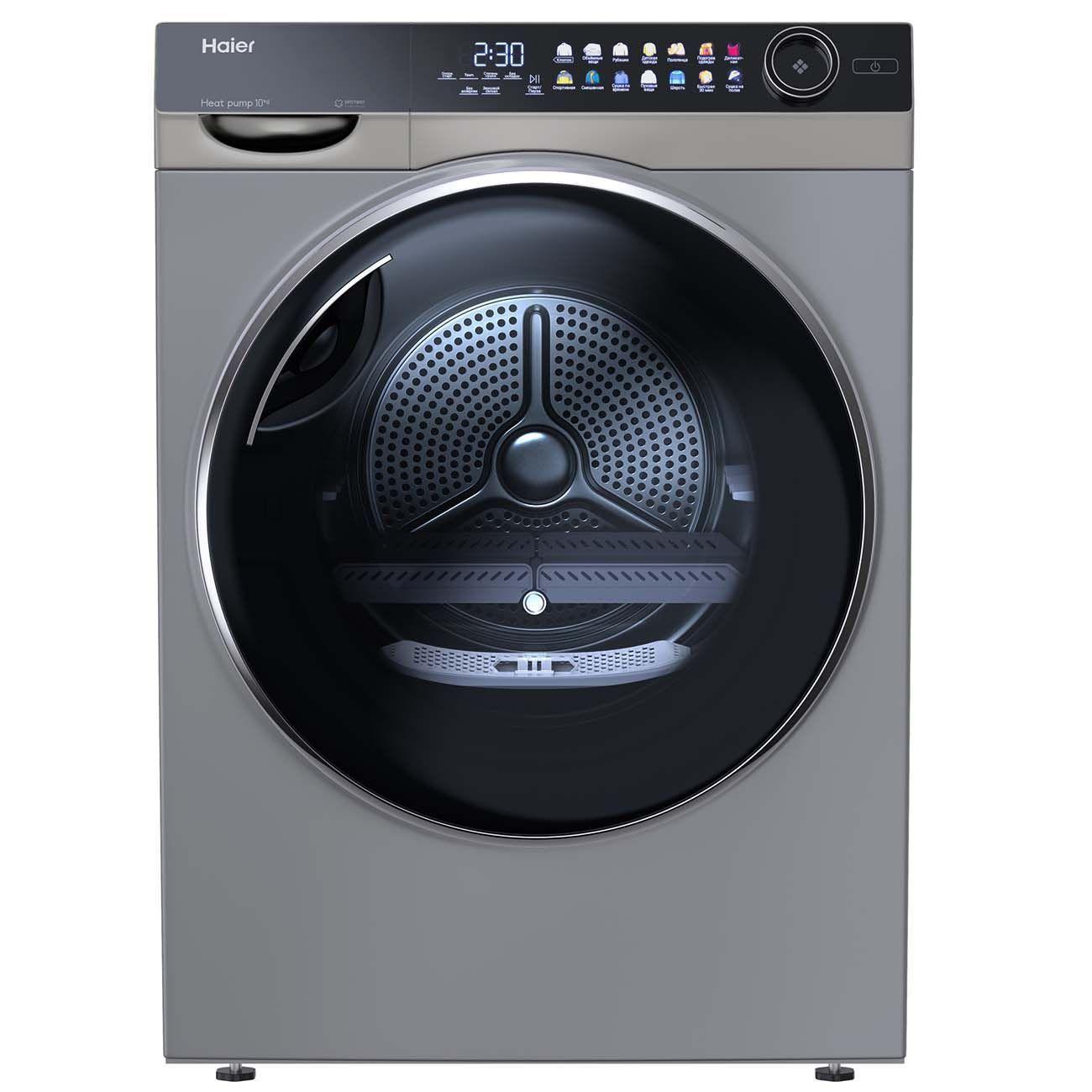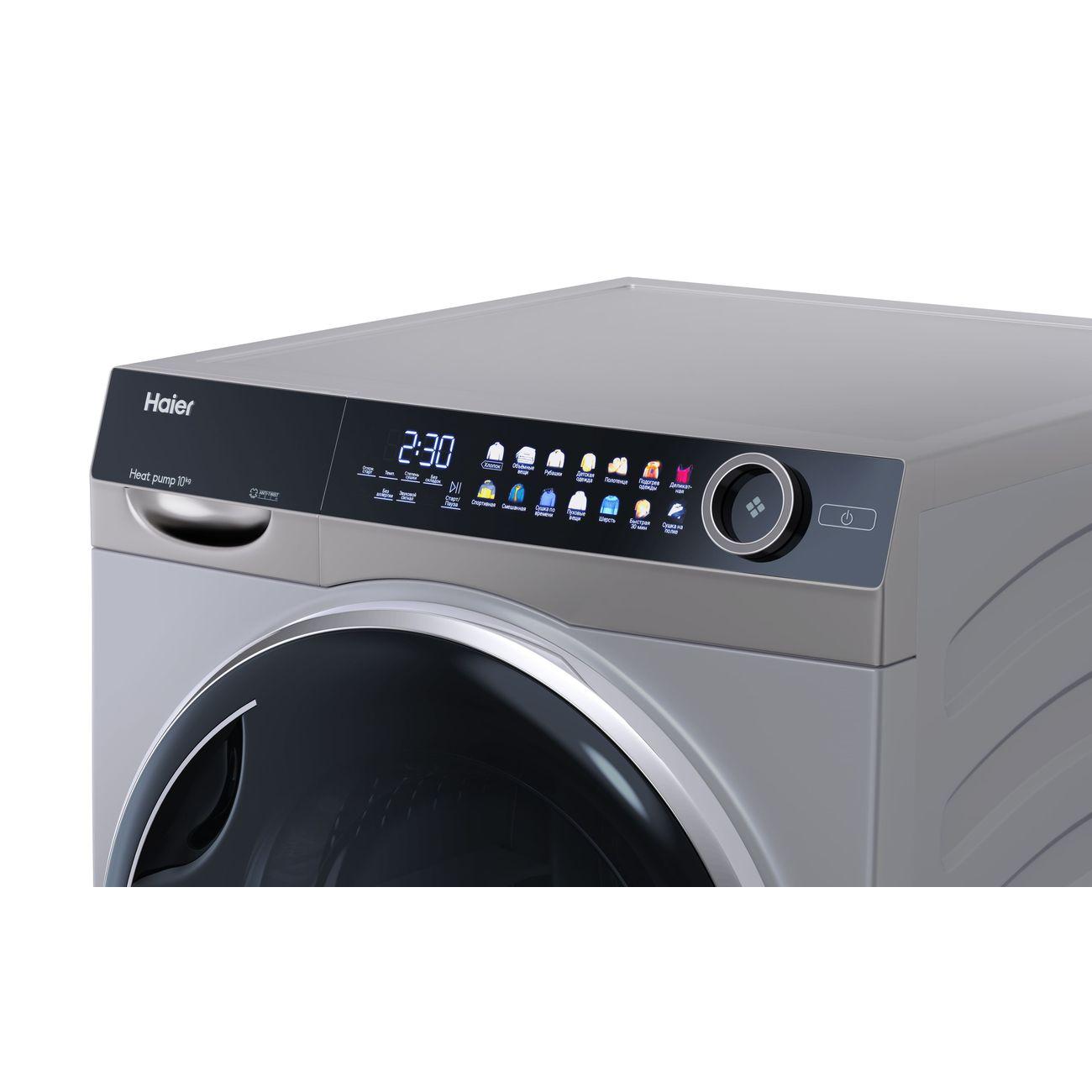 Сушильная машина Haier HD100-A2378S подходит для эффективной сушки до 10 кг белья с использованием теплового насоса, оснащена 14 программами и встроенным теплообменником.