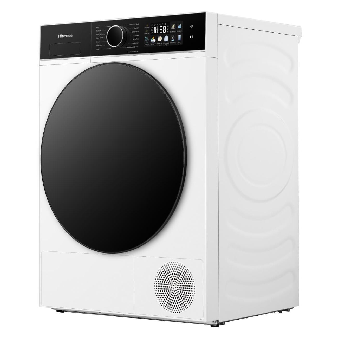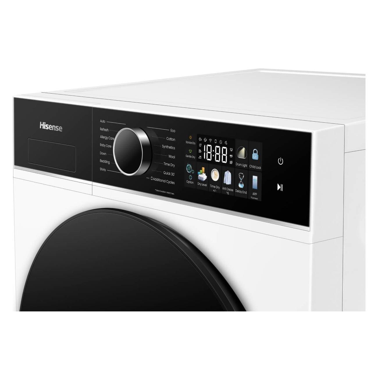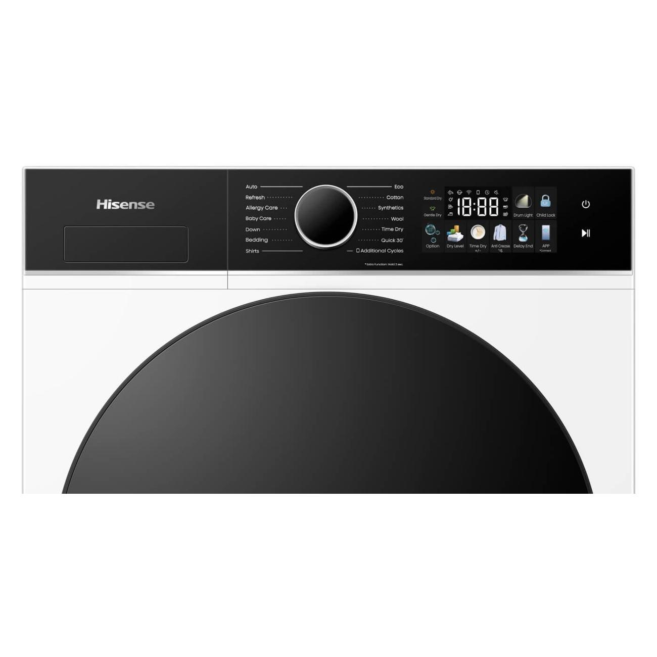Сушильная машина Hisense DH3I802UW2D обладает тепловым насосом, гарантирующим бережное обдувание теплым воздухом, благодаря чему влага равномерно испаряется из ткани. Уровень шума не превышает 64 дБ. Управление устройством производится посредством электронной панели или со смартфона.