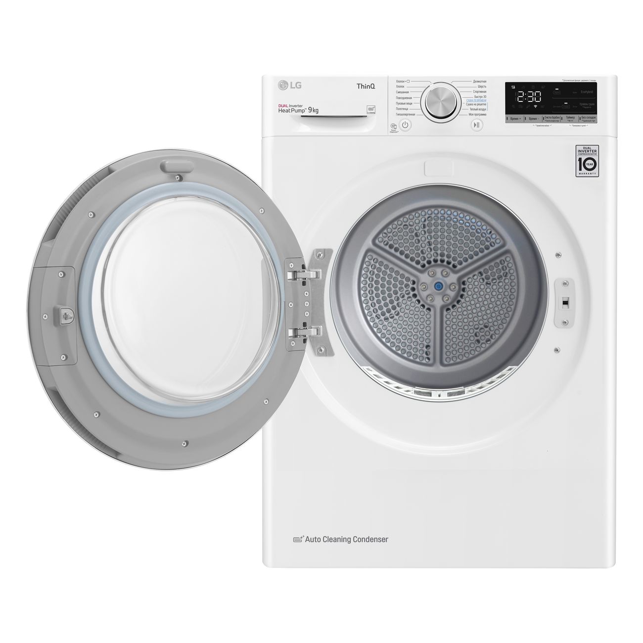 Благодаря системе самоочистки конденсатора прибор не требует особого ухода. Промывание происходит автоматически до трёх раз за цикл. Скопившийся ворс удаляется. Кстати, он улавливается двойным фильтром, так что устройство всегда работает эффективно.