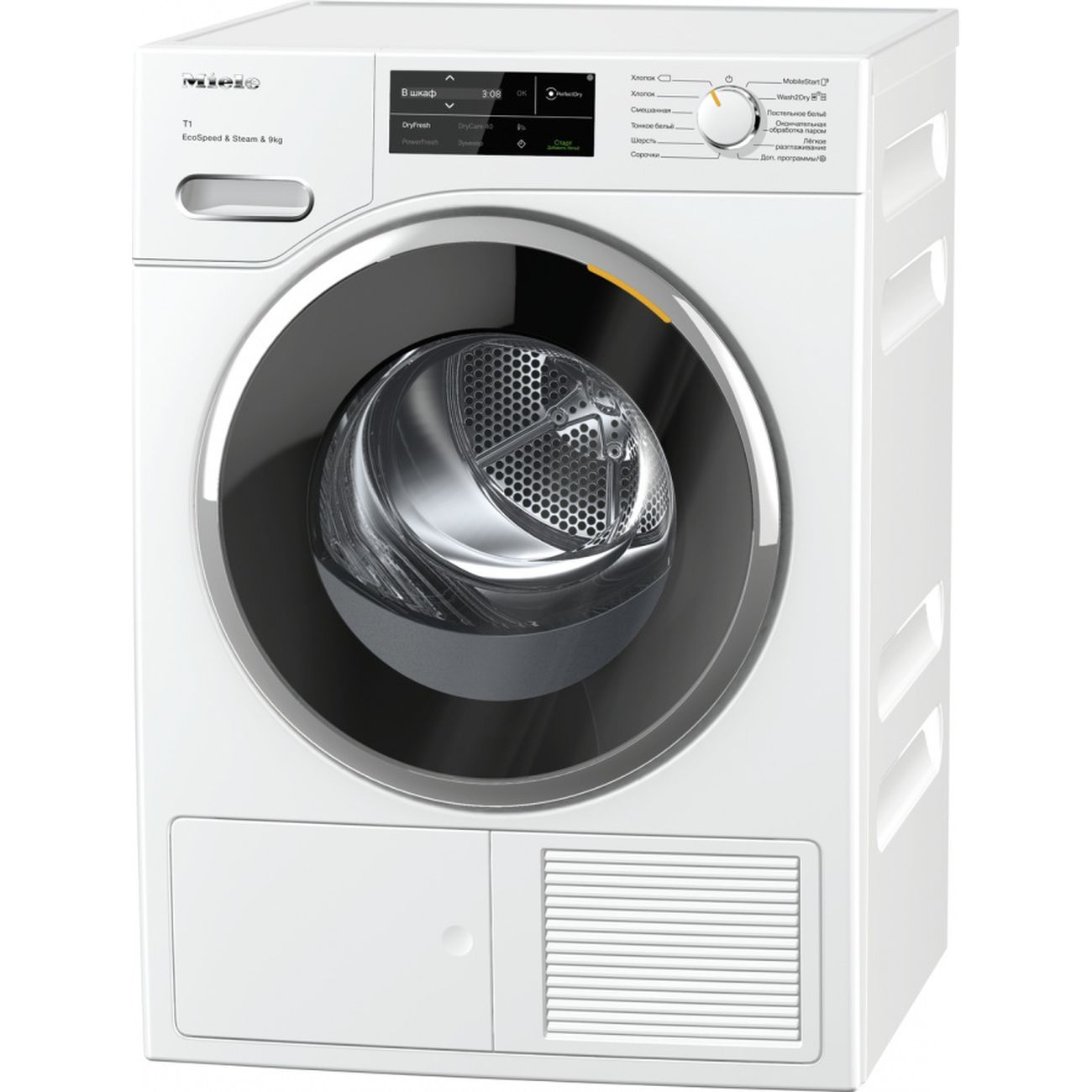 Сушильная машина Miele TWL780WP функционирует в режимах сушки шерстяных изделий, нижнего белья, сорочек, смешанных тканей и в режиме пропитывания. Функционал устройства включает в себя 20 программ. В качестве технологии сушки используется тепловой насос. Предусмотрено наличие таймера с максимальным показателем 24 ч и звукового сигнала по окончанию программы. Данная модель оснащена функциями антисминания после сушения, самоочищения теплообменника, отключения звукового сигнала, отвода скопившегося конденсата в дренаж и его вывода в специальный резервуар.