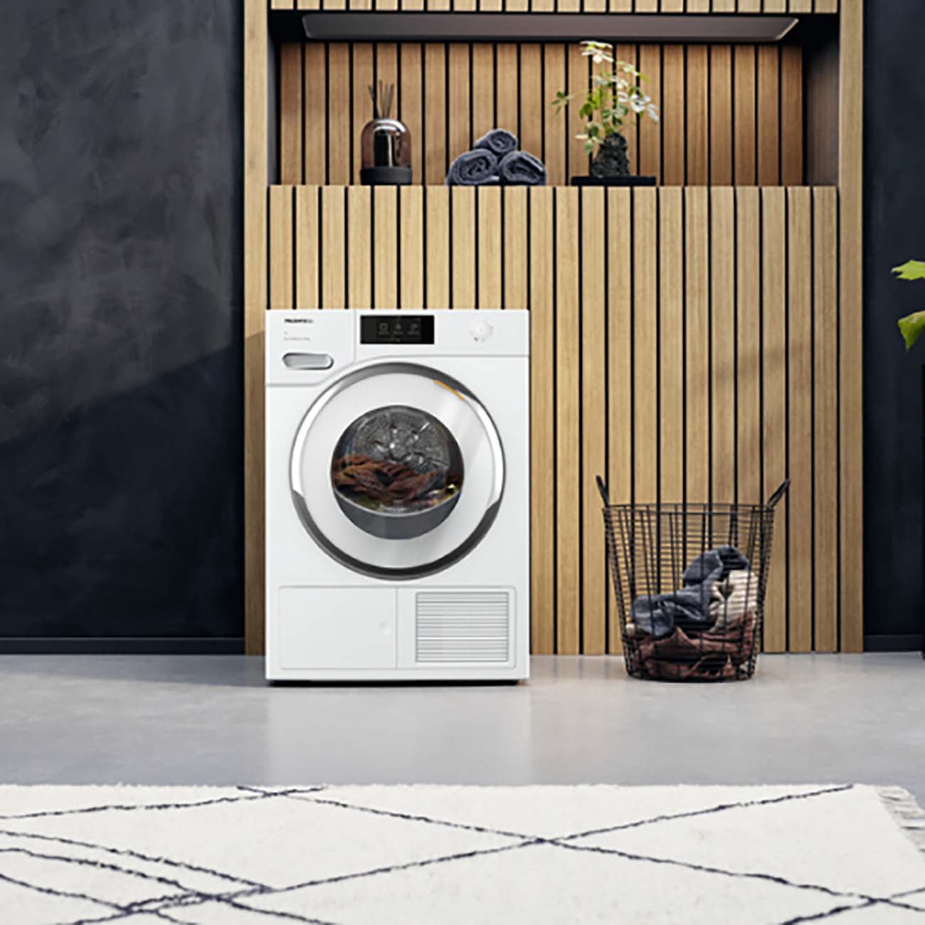 Сушильная машина Miele TWR780WP оборудована инверторным двигателем мощностью 1100 Вт, максимальный уровень шума не превышает 66 дБ. Устройство функционирует в 22 режимах, которые соответствуют типу ткани изделия. За один цикл сушки данная модель справится с 9 кг белья. Устройство оснащено функциями антисминания после сушки, самоочистки теплообменника, отвода конденсата в дренаж и сбора конденсата в резервуар. Данная модель легко монтируется в нишу и может устанавливаться на стиральную машину.