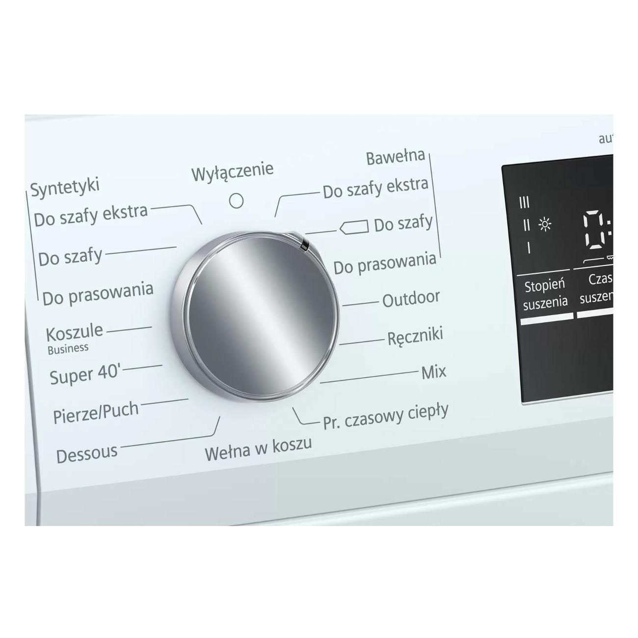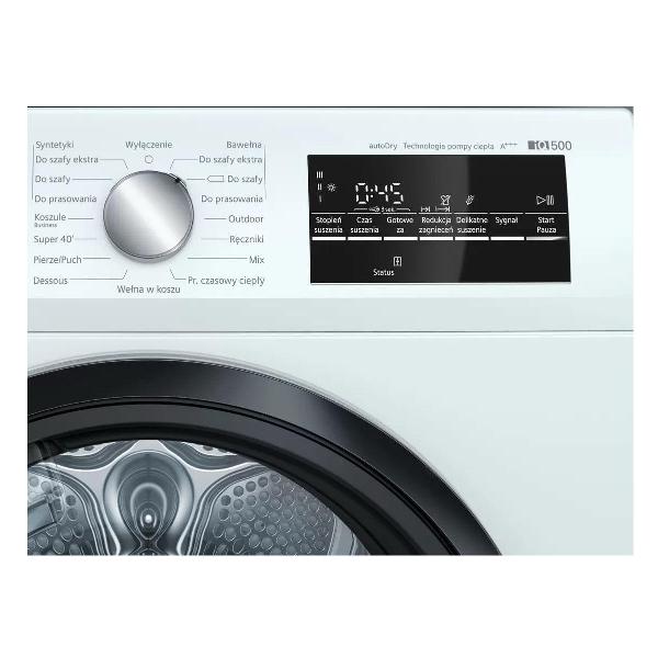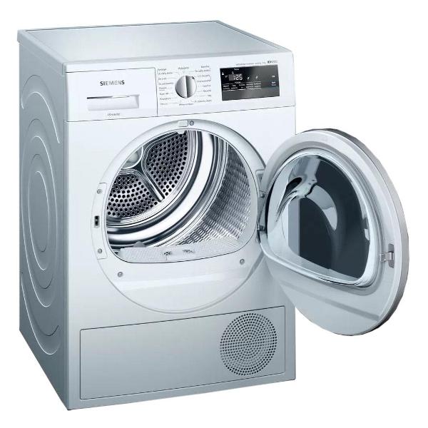 Сушильная машина Siemens WT47RTE0PL обладает технологией конденсационной сушки с тепловым насосом. Устройство оборудовано встроенным теплообменником с функцией самоочищения. Выделяемый конденсат выводится в дренаж и собирается в специальный резервуар. Управление устройством осуществляется посредством электронной панели, расположенной на корпусе. Конфигурацией машины предусмотрено наличие индикаторов заполнения резервуара, заполнения фильтра и времени до окончания программы.