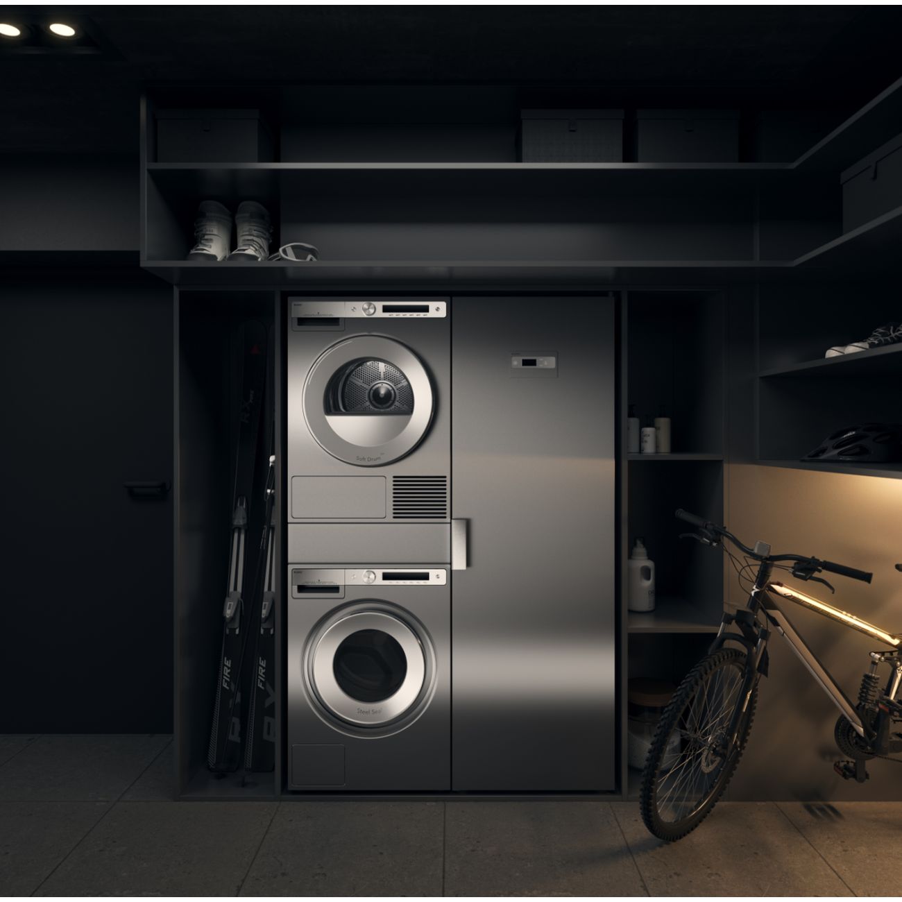 Сушильная машина Asko DC7784V.S стального цвета с восемью программами вмещает до 16 м вешалок. Прибор позволяет бережно высушить вещи из деликатных тканей. Габариты модели — 185,4х59,5х60,8 см. Вес изделия — 63 кг. Мощность устройства составляет 1,5 кВт. Присутствует функция удаления неприятных запахов из материи. Уровень шума во время работы не превышает 60 дБ. Прибор оснащен таймером, цифровым дисплеем, перенавешиваемой дверцей. Индикация показывает оставшееся до конца программы время. Длина шнура — 2,29 м.