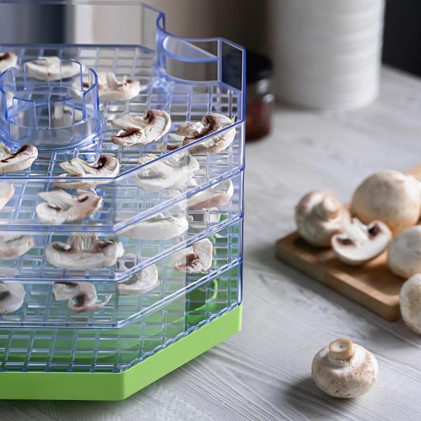 Сушка для фруктов Aresa AR-2601, зеленая, работает от сети 220 В по шнуру длиной 120 см, Прибор может использоваться для сушки ягод, фруктов, овощей, хлеба. Подходит для приготовления яблочных чипсов, вяленых томатов, пастилы, сушеных грибов, домашних травяных чаев, натуральных специй.