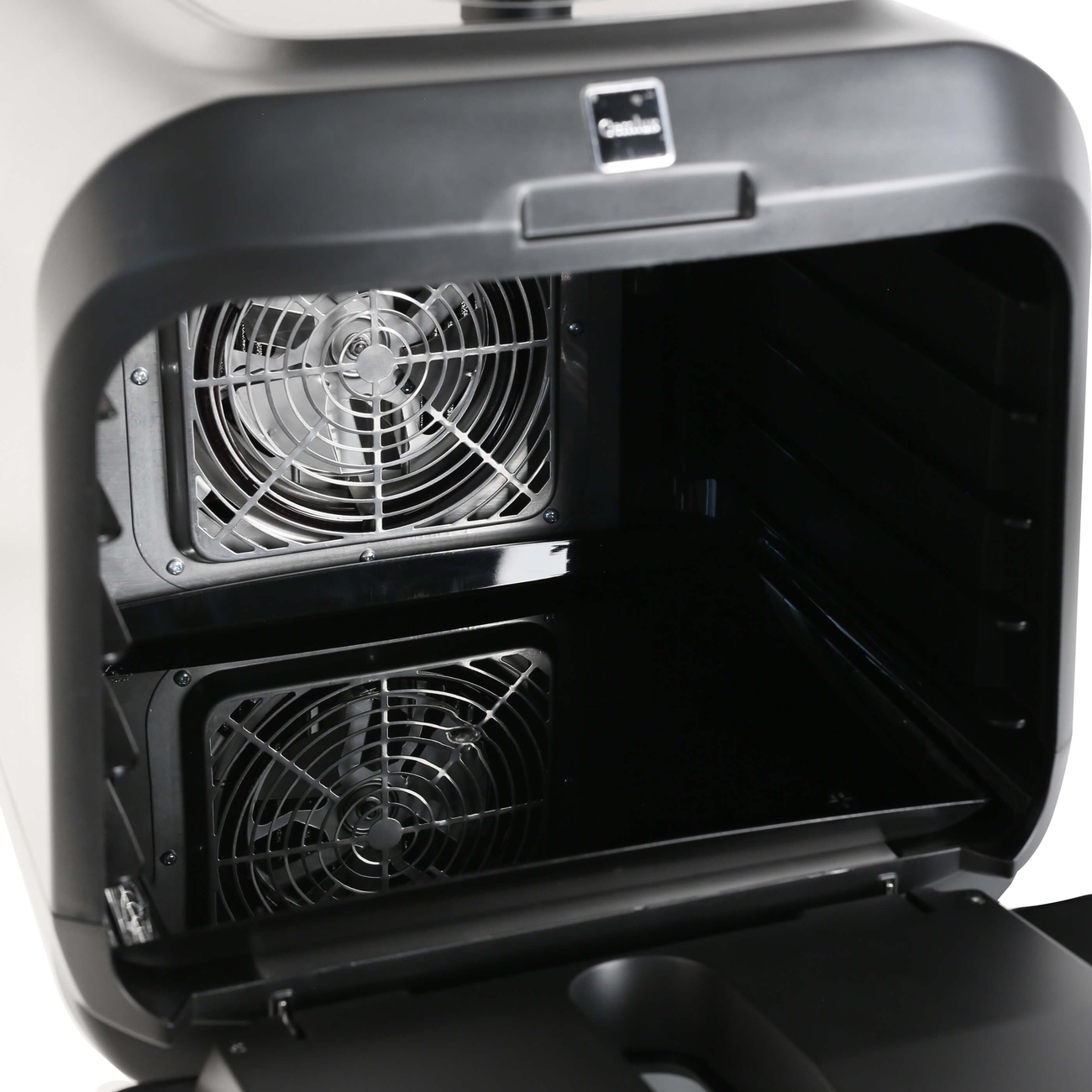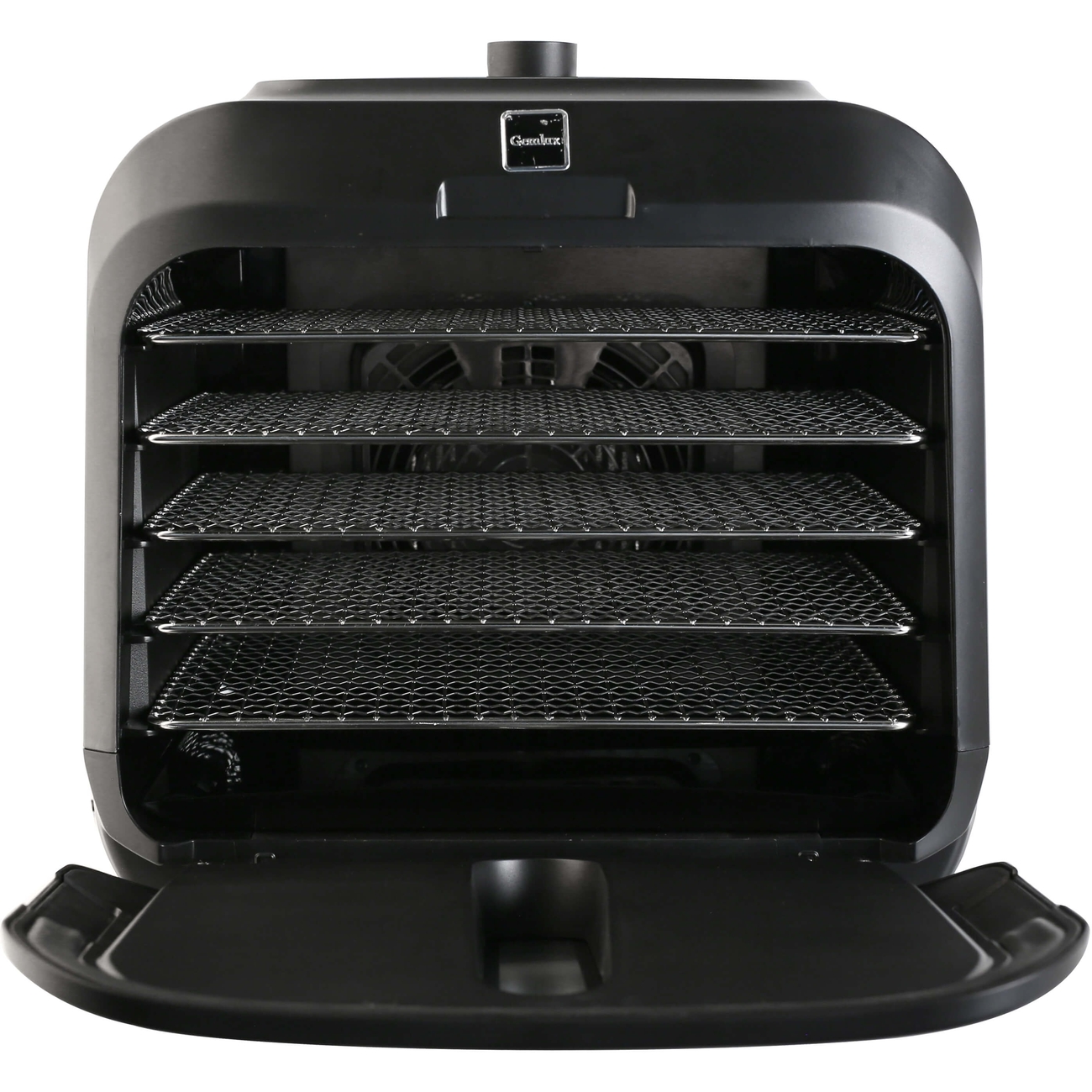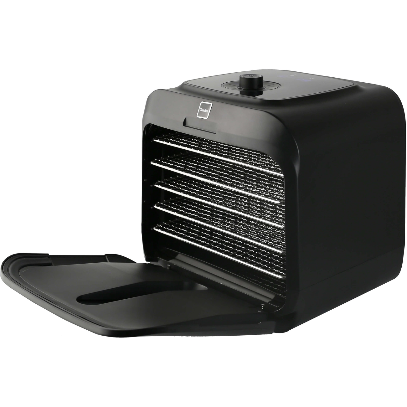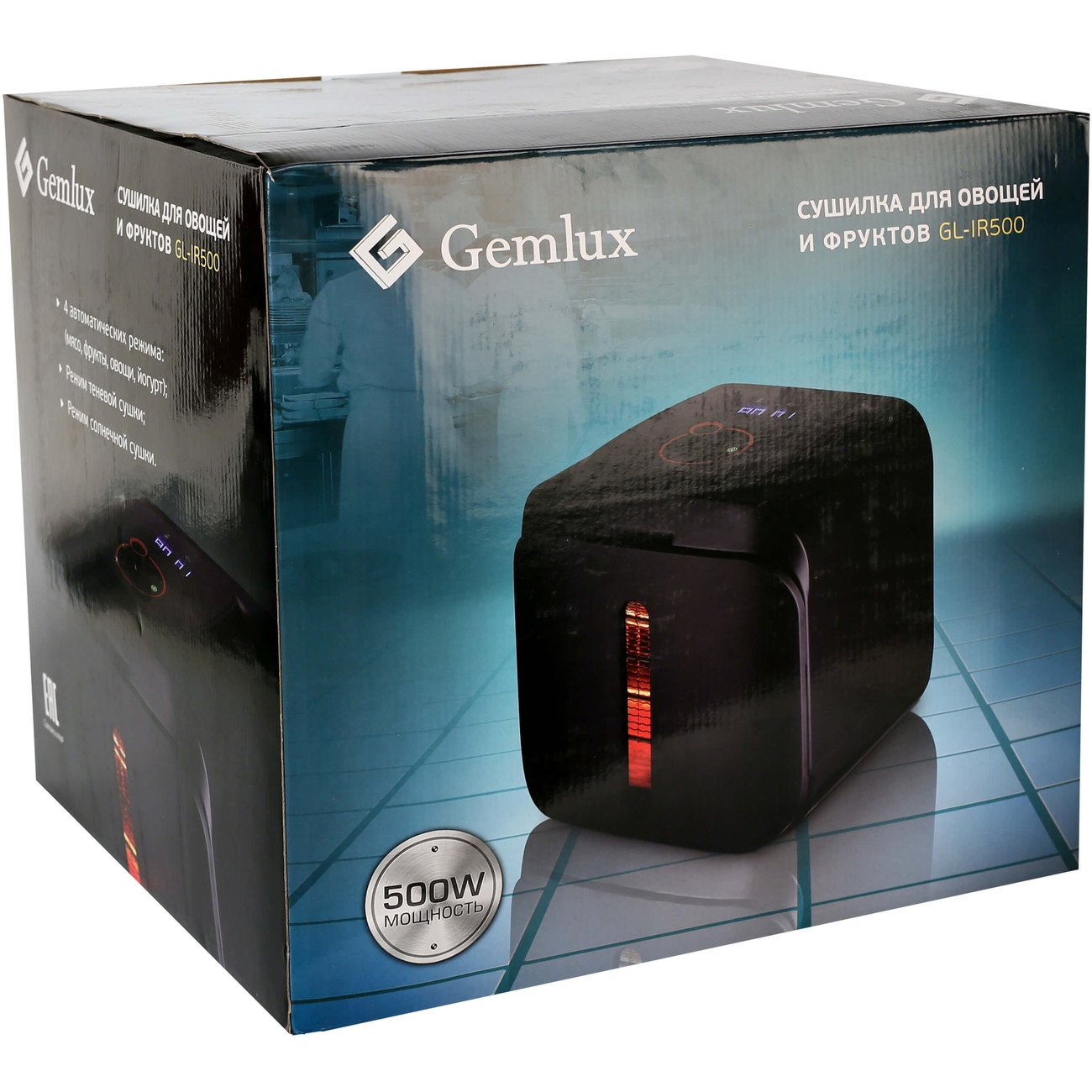 Сушилка для фруктов Gemlux GL-IR500 оснащена инфракрасным нагревателем с горизонтальной подачей воздуха. Пластиковый корпус оборудован таймером с максимальным обратным отсчетом 99 часов, дисплеем с индикацией питания. Внутри — пять секций с нерегулируемой высотой, пять поддонов из нержавеющей стали. Устройство работает в температурном диапазоне 30-70°. Из дополнительных функций — режим стерилизации при температуре 80°. В сушилке установлена защита от перегрева. Потребляемая мощность — 0,5 кВт. Сушилка весит 8.4 кг, а ее размеры составляют 39 x 41,7 x 44,5 см.