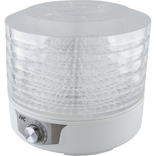 Сушка для фруктов JVC JK-FD753 — устройство с нагревом от +35°C до +70°C. Предусмотрен таймер, который сообщает о времени, затраченном на цикл. Модель подходит для сушки разных продуктов, в том числе рыбы, мяса, фруктов и овощей, ягод, грибов и некоторых других. Для этого в комплекте есть пять поддонов из пластика с прозрачными стенками. Возможна регулировка высоты секций. Индикация сообщает о работе устройства в текущий момент.