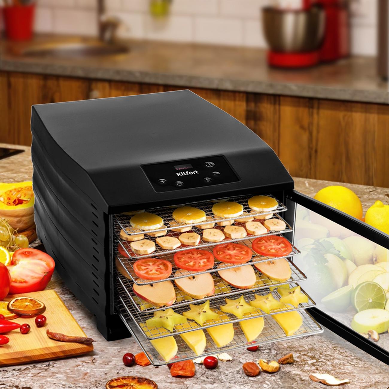 Долго выбирала сушилку, в данной модели подкупила мощность и дизайн. Долго ждала доставку, около месяца, но это претензия к М-Видео. Высушила мясо за 6,5 часов. Есть с чем сравнить: до этого была древняя сушилка, где лотки еще местами надо переставлять, мясо сушили сутки!!! Здесь красота: поставил, включил таймер, 6,5 часов и все готово! Самое главное, что не надо переставлять лотки, спокойно ставишь на ночь! Когда только включили показалось, что шумновата, но нет, оставили на ночь, спать абсолютно не мешала. Лотки моются легко. К покупке рекомендую.