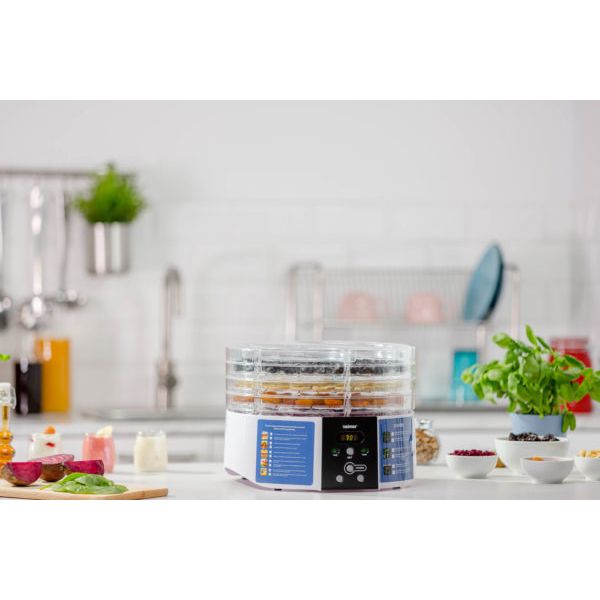 Качественный пластик, есть поддон, т.е. если будет капать сок то не на провода. Шумит как напольный вентилятор, звук по истечению времени сушки не издает, для меня это плюс, т.к. включаю на ночь. Не знаю как на других дегидраторах, на этом можно в процессе регулировать время и температуру. Еще привлекло - 2 года гарантии, правда и срок службы такой же, но если судить по соковыжималке этого же брэнда, то это не критично, т.к. соковыжималка работает более 13 лет. В общем покупкой довольна.