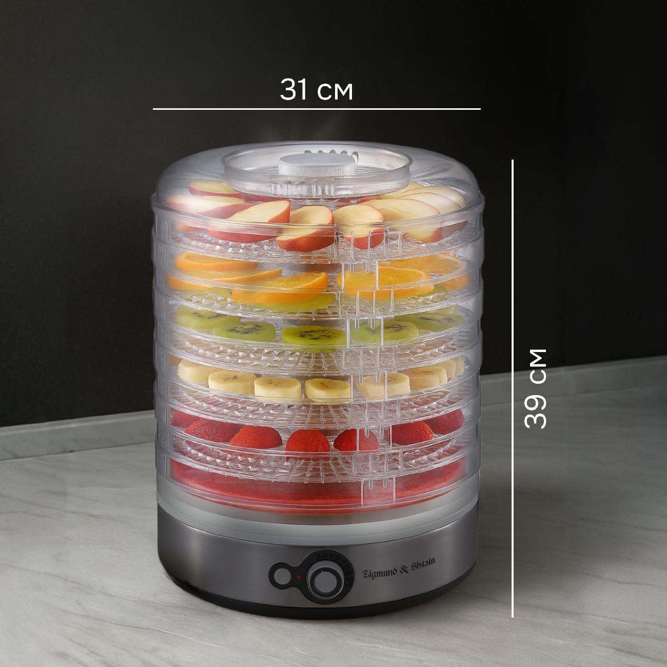 Заказала сушилку данной фирмы, пришла на день раньше, внешний вид товара (коробка, упаковка, сама сушилка) - отличный! Внешне 5+, стильно смотрится на кухне. Проста в управлении, температура от 35 до 70 *, широкие поддоны, регулируются по высоте, 6 ярусов+решётка для пастилы и мармелада; сушилка не маленькая, нормальная такая, не хухры-мухры)) Первый день вялю томаты со специями, по рецепту, в комплекте есть инструкция на русском, рецепты: рыбка, мясо, овощи, фрукты и т.д., НЕ ШУМИТ, ЗАПАХА ПЛАСТИКА НЕТ! Хороший товар, рекомендую! До этого была сушилка от другой фирмы, тоже не плохая, но эта помощней + вид, качество гораздо лучше. Не сомневайтесь, берите данный товар однозначно!!!