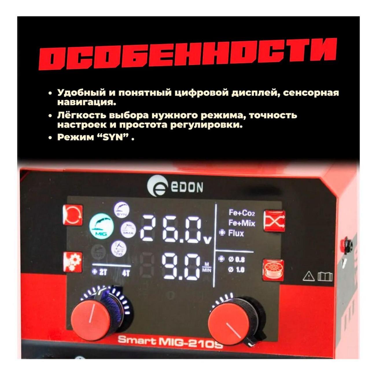 Вы можете купить Сварочный аппарат Edon Smart MIG-210S в магазинах М.Видео по доступной цене. Сварочный аппарат Edon Smart MIG-210S: подробное описание, фото и отзывы реальных покупателей, характеристики, возможность скачать инструкции и подобрать аксессуары.