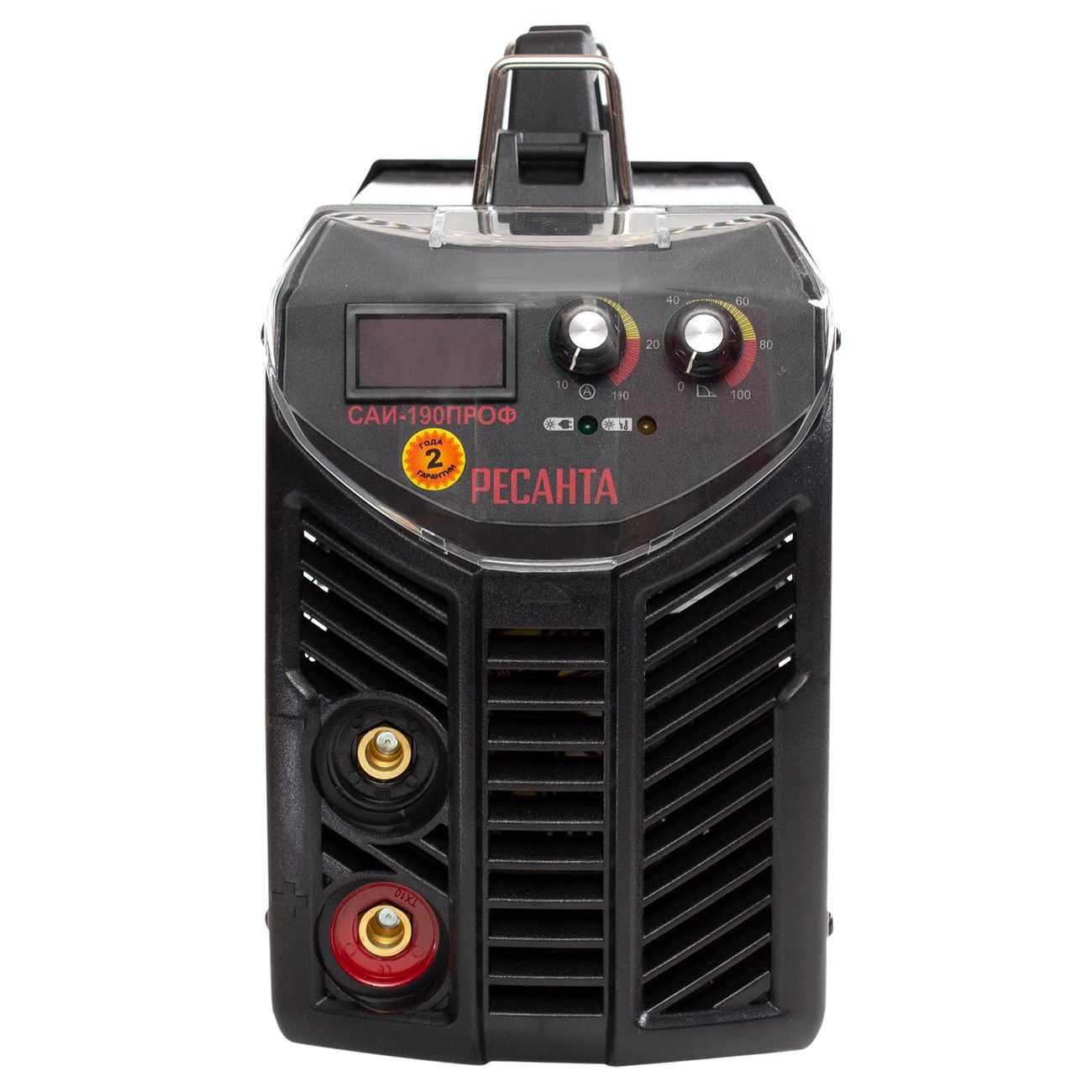 «Ресанта» САИ-190ПРОФ — универсальный и простой в применении сварочный аппарат инверторного типа. Он позволяет соединять металлические элементы с помощью электрода диаметром до 5 мм. Эту модель можно использовать для домашних нужд. Она уверенно работает при пониженном токе (до 100 В). Весит прибор 8,55 кг, для перемещения в разные места есть широкая ручка. Есть функции антизалипания, горячего старта и автоотключения при перегреве.