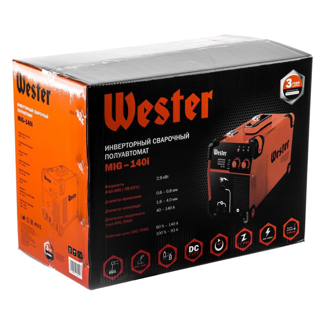 Вы можете купить Сварочный аппарат, инвертор Wester MIG-140i в магазинах М.Видео по доступной цене. Сварочный аппарат, инвертор Wester MIG-140i: подробное описание, фото и отзывы реальных покупателей, характеристики, возможность скачать инструкции и подобрать аксессуары.