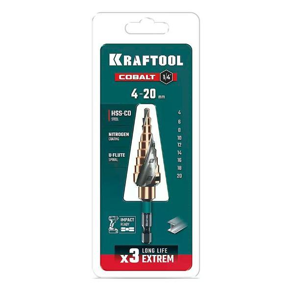 Сверло ступенчатое KRAFTOOL COBALT оснащено плавным переходом в виде ступеньки, что позволяет получить аккуратное отверстие нужного диаметра.Особенности и преимущества:- обеспечивает получение идеально ровных краев;- не требует предварительной наметки (кернения или засверливания);- спиральный профиль облегчает сверление металла;- не проскальзывает в патроне за счет шестигранного хвостовика.. Тип: Сверла по металлу; Вид сверла: Ступенчатое, конусное; Хвостовик: Шестигранный (HEX); Материал сверла: Быстрорежущая сталь (HSS); Бренд: KRAFTOOL; Страна производства: Китай; Вес 0.06