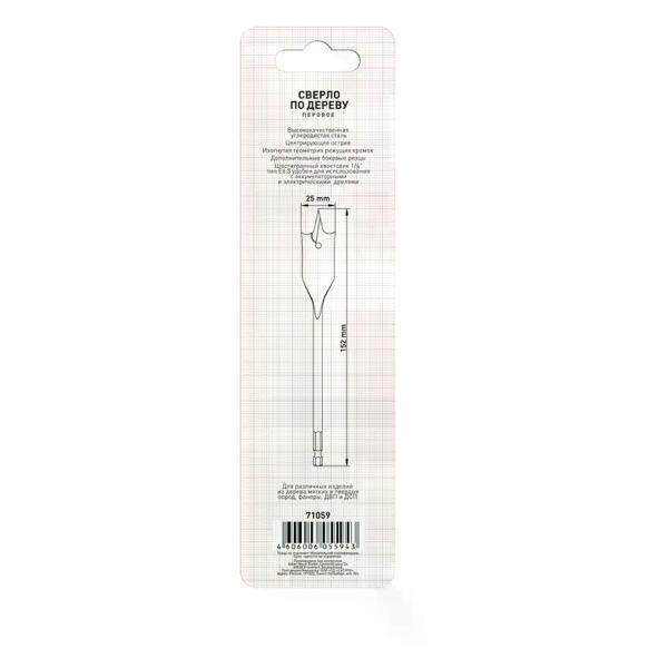 Сверло перовое Trigger 71059 с шестигр. хвостовиком 25 мм. Предназначено для создания отверстий в мягких материалах, преимущественно древесине, фанере, ДСП и ДВП. Высококачественная углеродистая сталь. Центрирующее острие, изогнутая геометрия режущих кромок и дополнительные боковые резцы для точного и производительного сверления. Шестигранный хвостовик 1/4" тип Е6,3. Наиболее удобен для использования с аккумуляторными дрелями и шуруповертами. Тип товара : Сверло перовоеСверло по дереву; Диаметр, мм : 25; Назначение : Дерево; Материал : Углеродистая сталь; Вес : 0,06