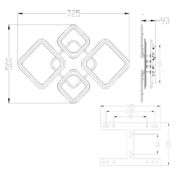 Светильник Estares Oval позволяет менять цвет освещения в комнате в диапазоне RGB с помощью смартфона или пульта ДУ. Максимальная потребляемая мощность составляет 75 Вт. Устройство может использоваться в помещениях площадью до 20 м². Прибор представляет собой перекрещивающиеся плафоны в виде прямоугольников, изготовленные из органического стекла (ПММА).