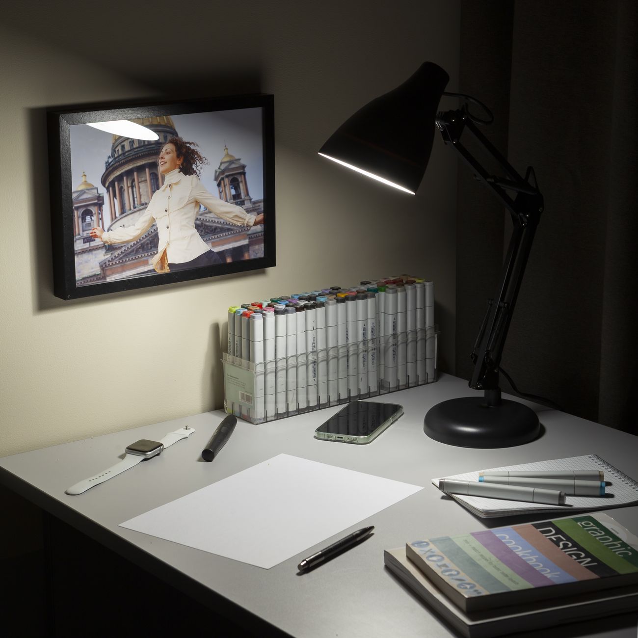 Я просто влюблена в эту настольную лампу! Черный цвет идеально вписывается в мой интерьер, создавая стильный и современный вид, плюс у меня все, что связано с компьютером черное - монитор, системный блок, ноутбук на системном блоке :)). Кроме того, лампа очень удобная в использовании. Регулируется высота, наклон плафона.. в первый раз попалась такая, что плафон падал все время и даже в магазине никто не смог ее зафиксировать, но мне поменяли на другую такую же без вопросов и она вся совершенная. Сборка - корпус вставляется в основание нормально, просто надо сильно надавить и она вставится. Это прекрасное приобретение, и я безумно довольна этой настольной лампой!