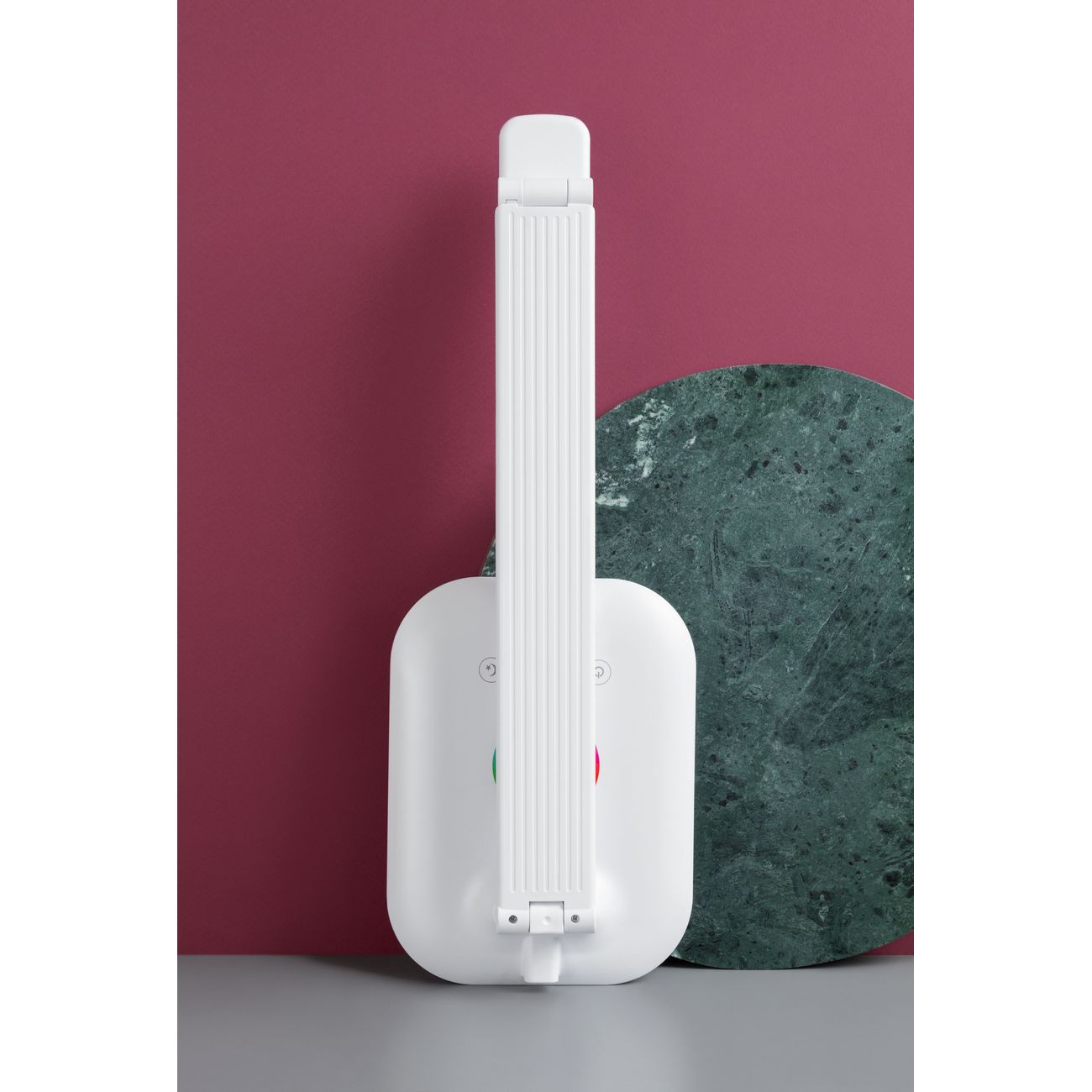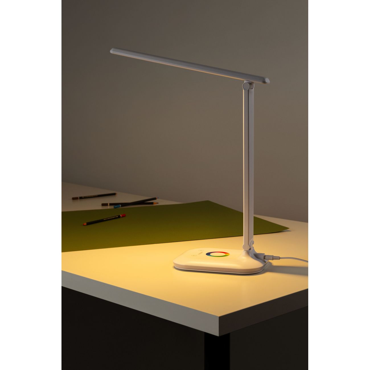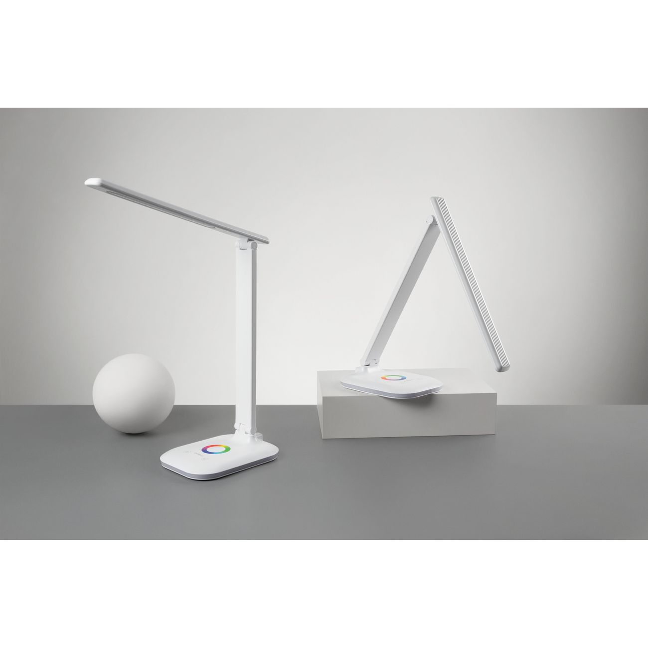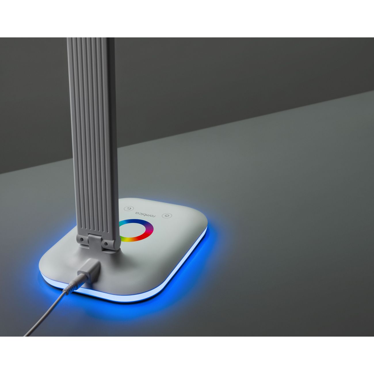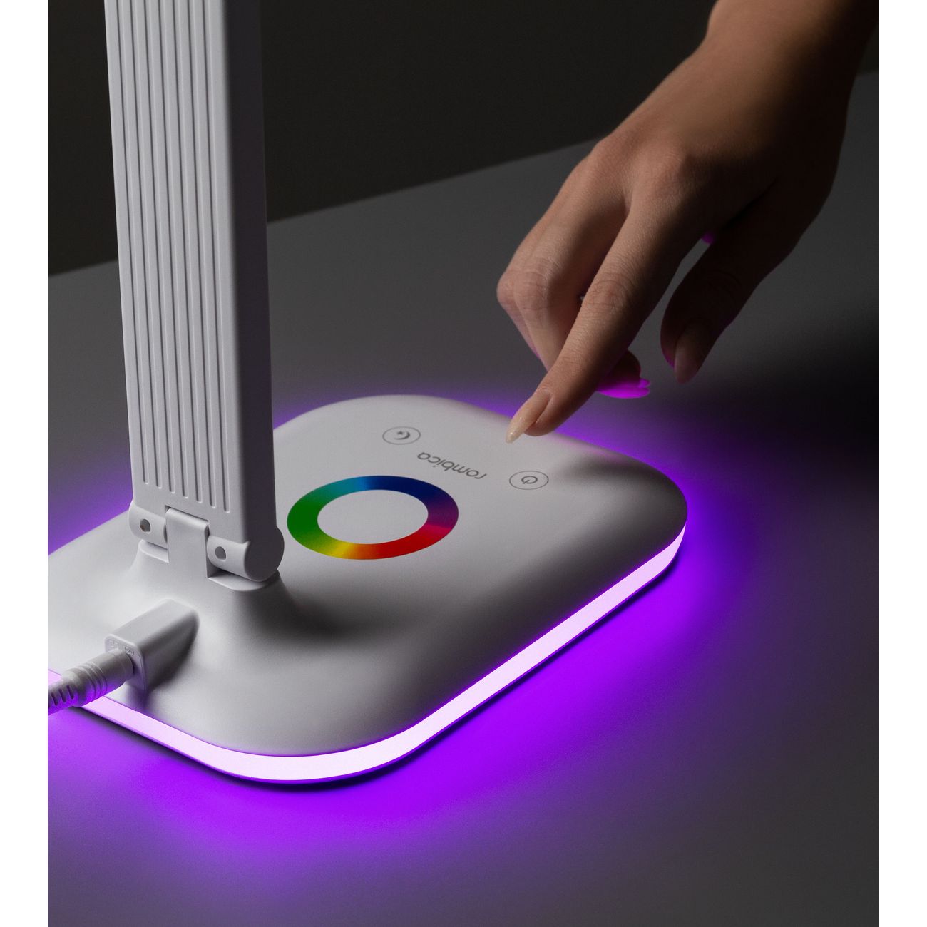 Rombica LED Chroma DL-H026 — настольный светильник в белом корпусе из пластика, снабженный плавным регулятором яркости и цвета потока (RGB). Управление обеспечивает сенсорная панель, питание устройство получает от сети. В комплекте есть кабель для подключения длиной 1,5 м. В эту модель установлена одна диодная лампа, излучающая поток силой 500 Лм с цветовой температурой от 3000 К до 6000 К. Направление света можно менять. Размеры конструкции — 65х14 см, вес — 533 г.