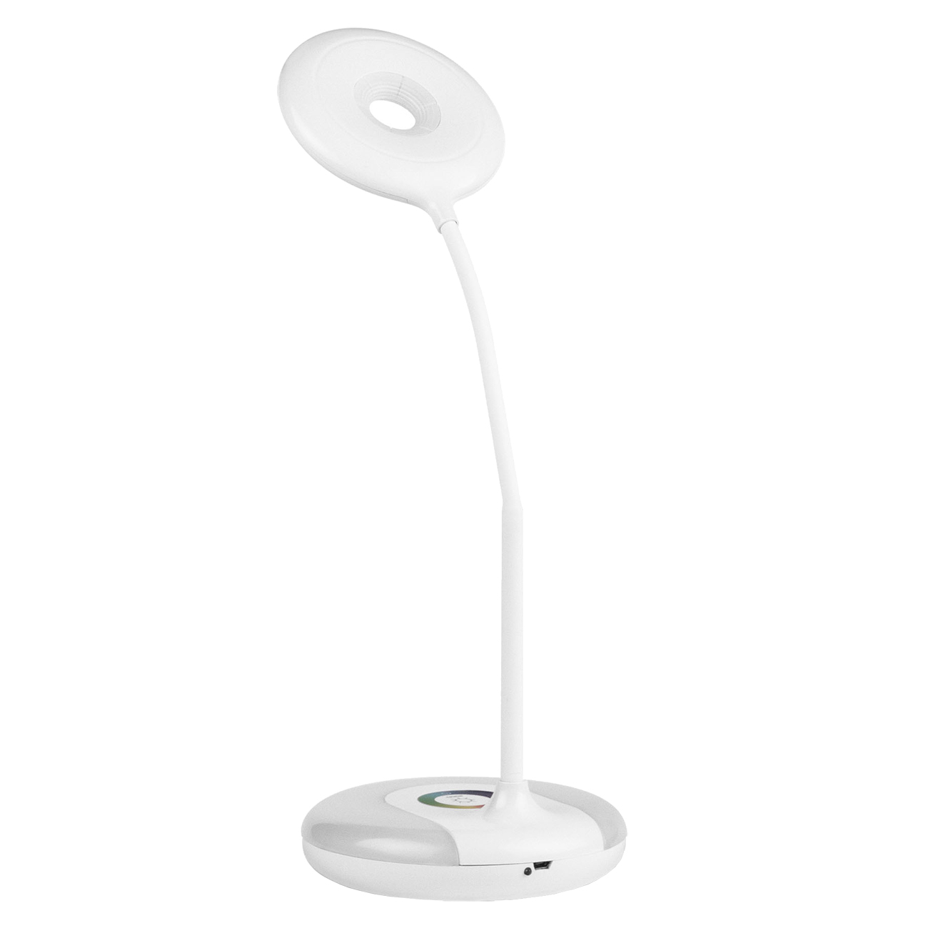 Лампа с 25 светодиодами обеспечивает ровный белый свет (цветовая температура 6000 К). С ним будет комфортно читать, писать, заниматься рукоделием. Яркость освещения можно регулировать. Доступно три режима, которые меняются лёгким нажатием на сенсорную кнопку, расположенную на подставке.