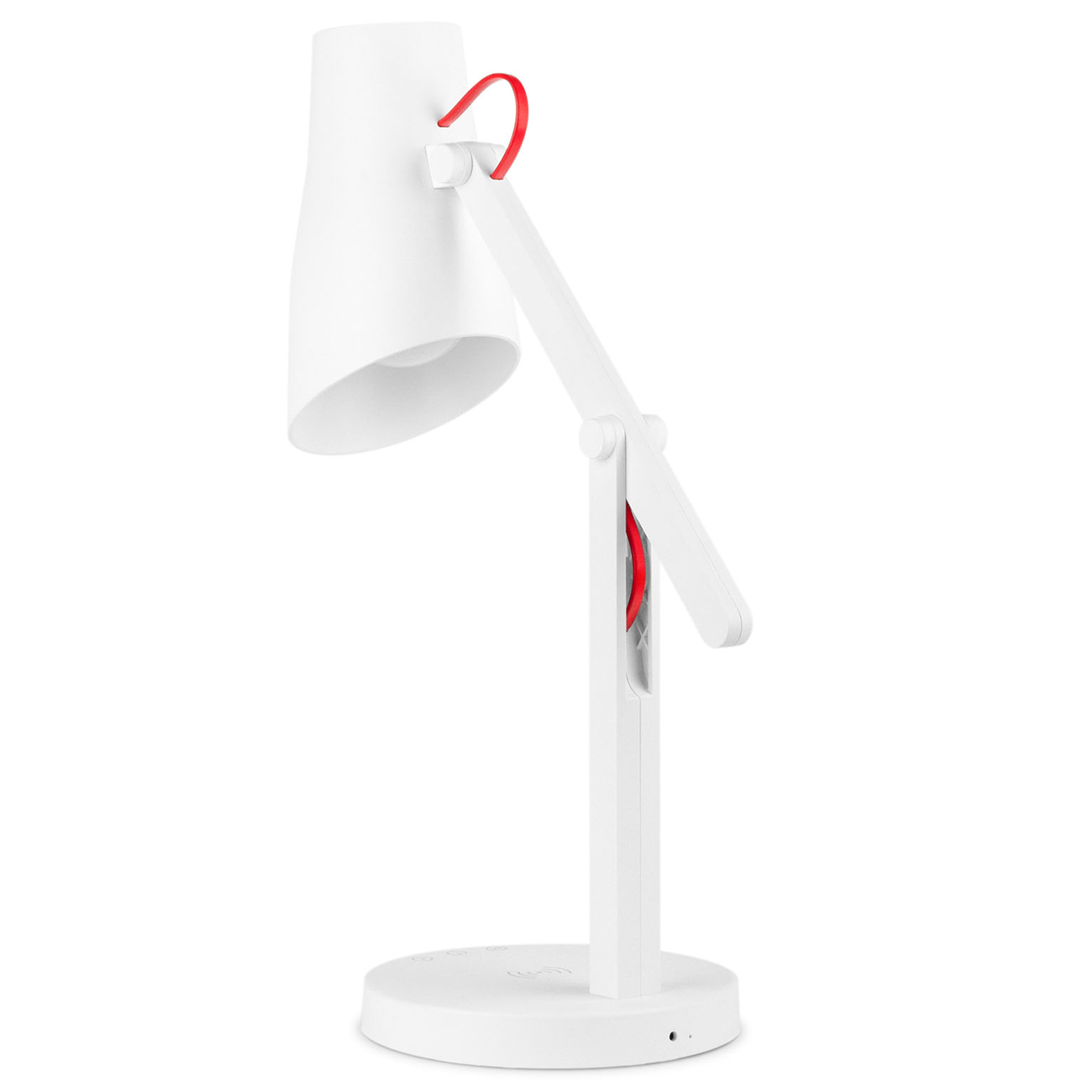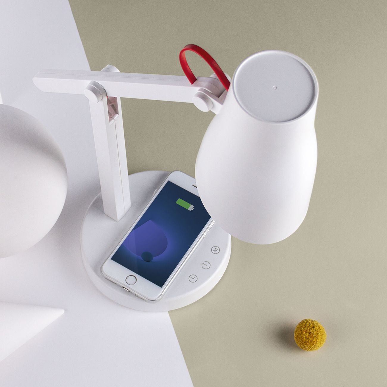 Светильник работает от обычной электросети. В комплекте есть оригинальный блок питания. Лампа оснащена беспроводным зарядным устройством. Вы сможете подпитывать на нём смартфоны, планшеты и мобильные гаджеты с функцией Qi.