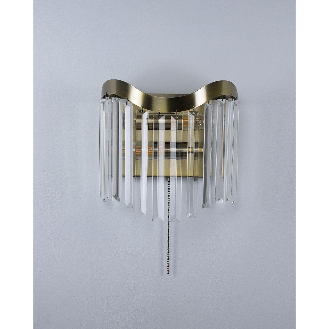 Настенный светильник из серии Wave. Металлический каркас золотистого цвета украшен хрустальными вставками, которые добавляют разнообразия в дизайн. В качестве источника света могут подойти лампы накаливания или LED с цоколем Е14. Изящный стиль и лаконичный дизайн бра придаст свежесть и разбавит интерьер комнаты светлыми тонами.